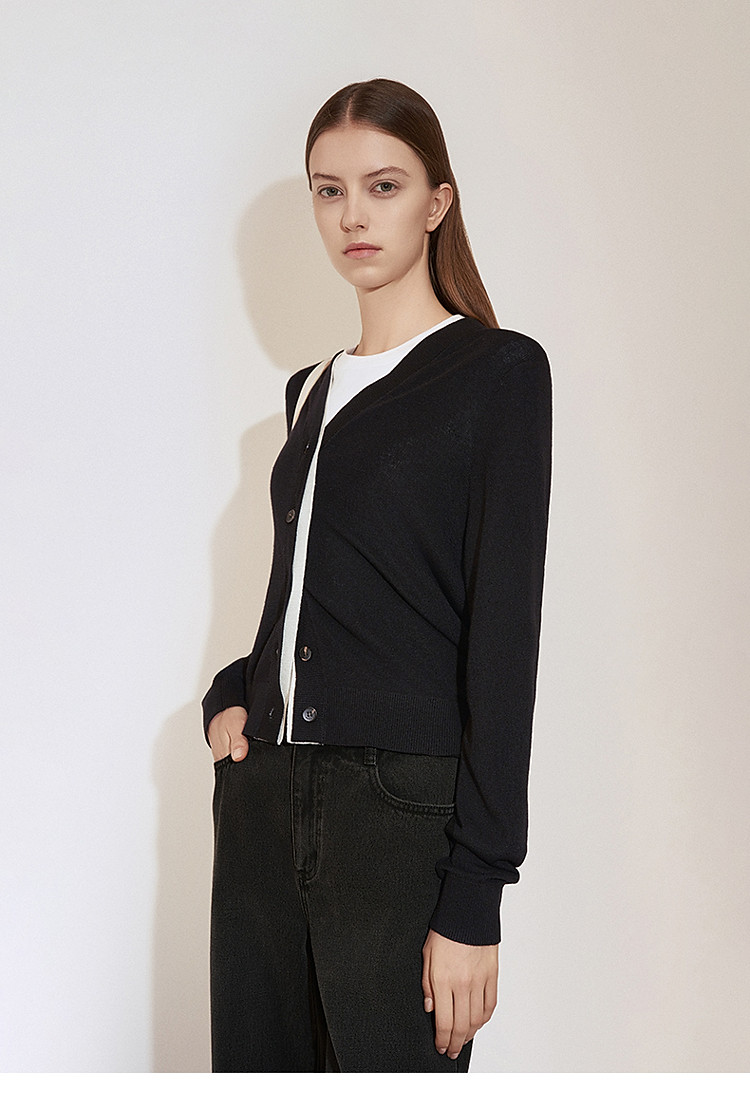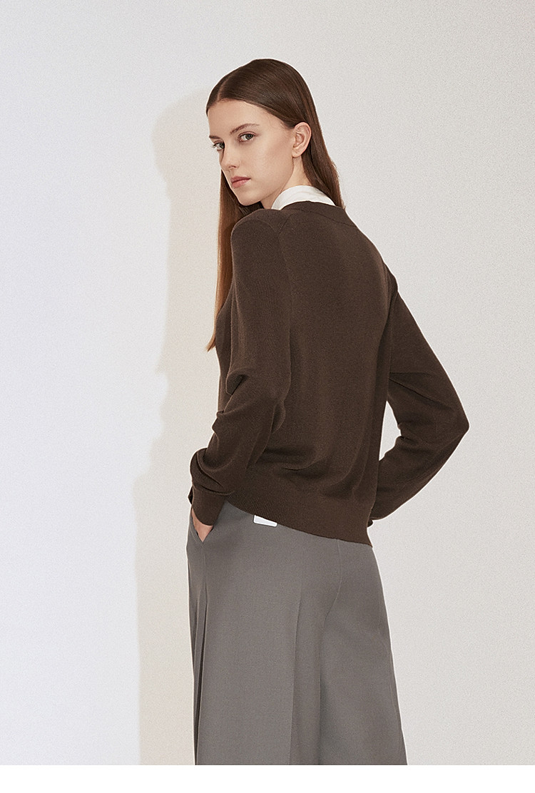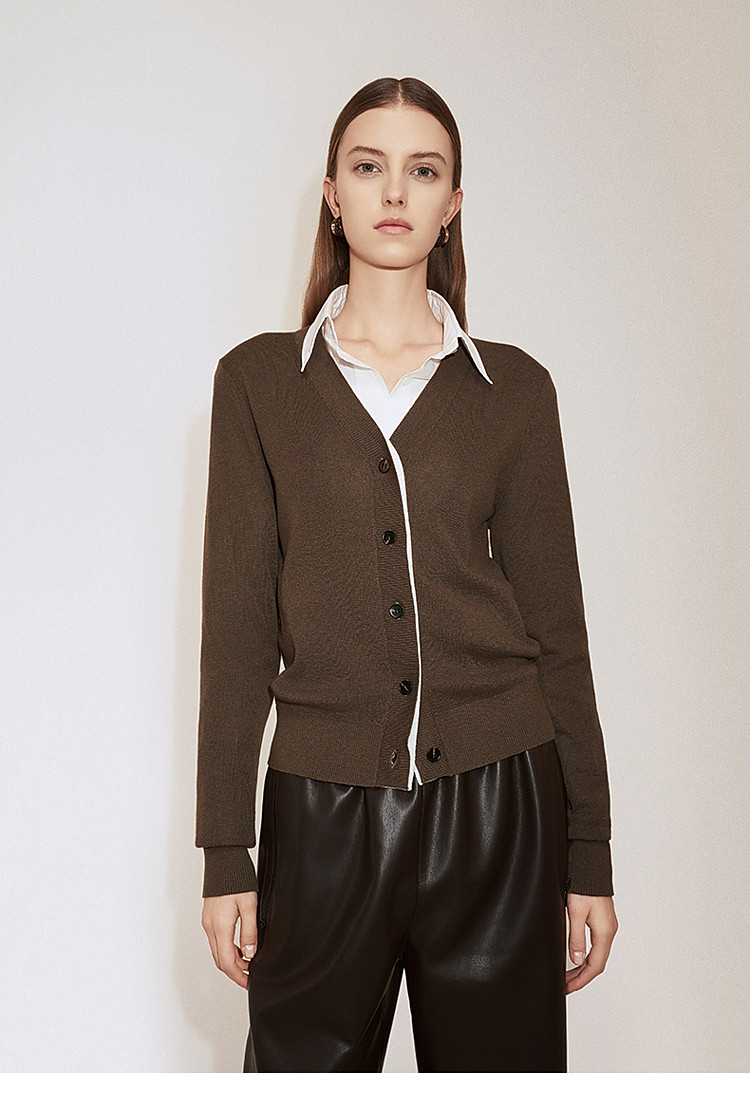 春装 假两件毛衣开衫V领羊毛针织外套女 835727