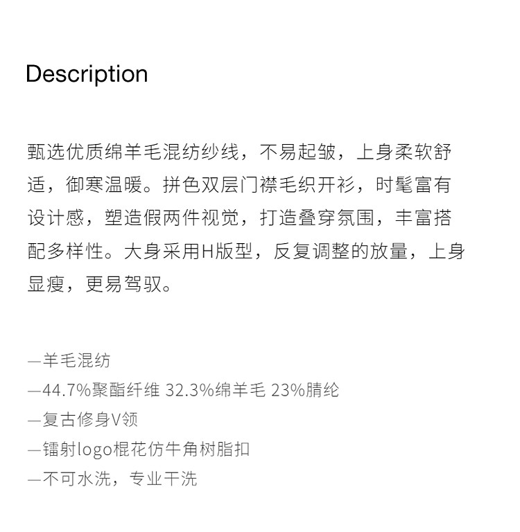 商品名称:春装 假两件毛衣开衫V领羊毛针织外套女 835727