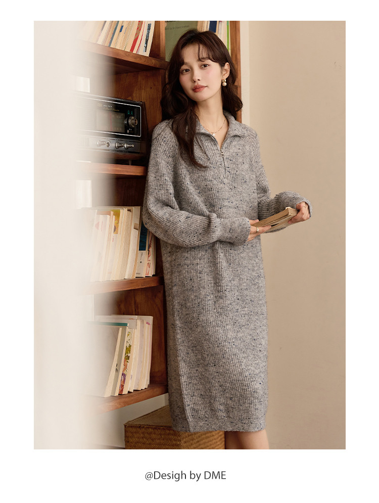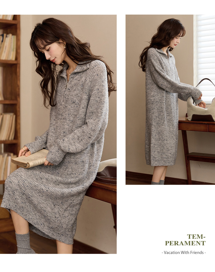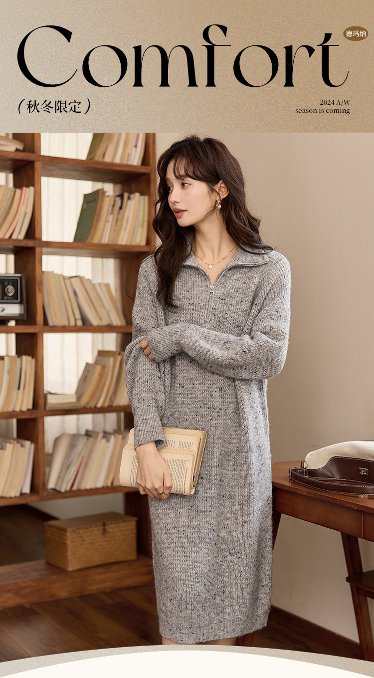 【百搭慵懒】春秋半开领打底中长款毛衣裙时尚显瘦减龄针织连衣裙 189505