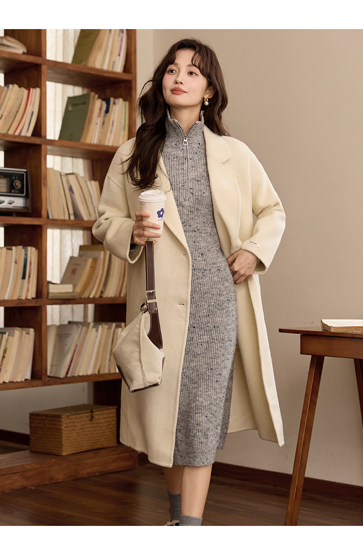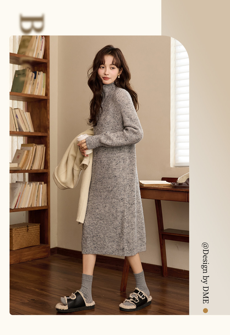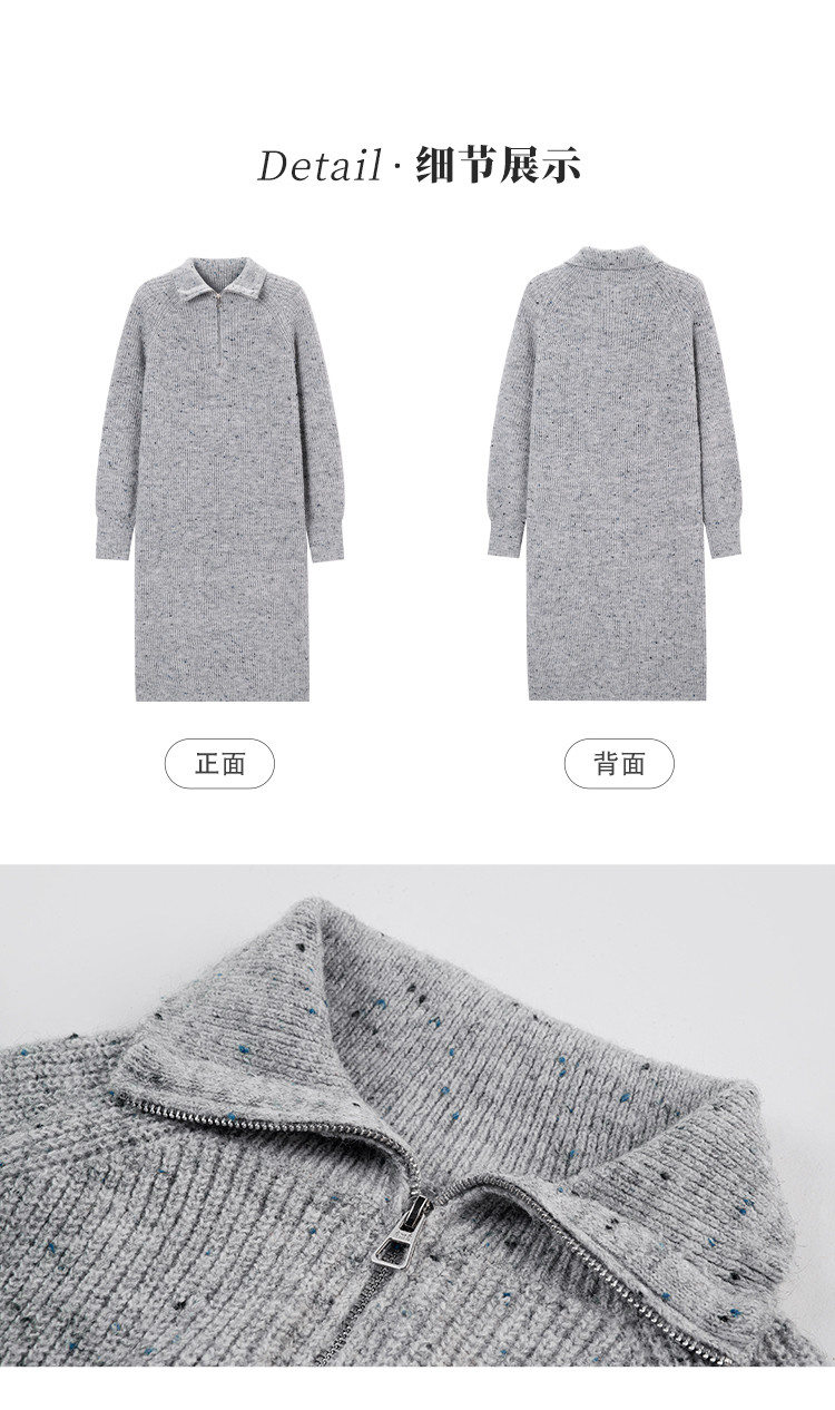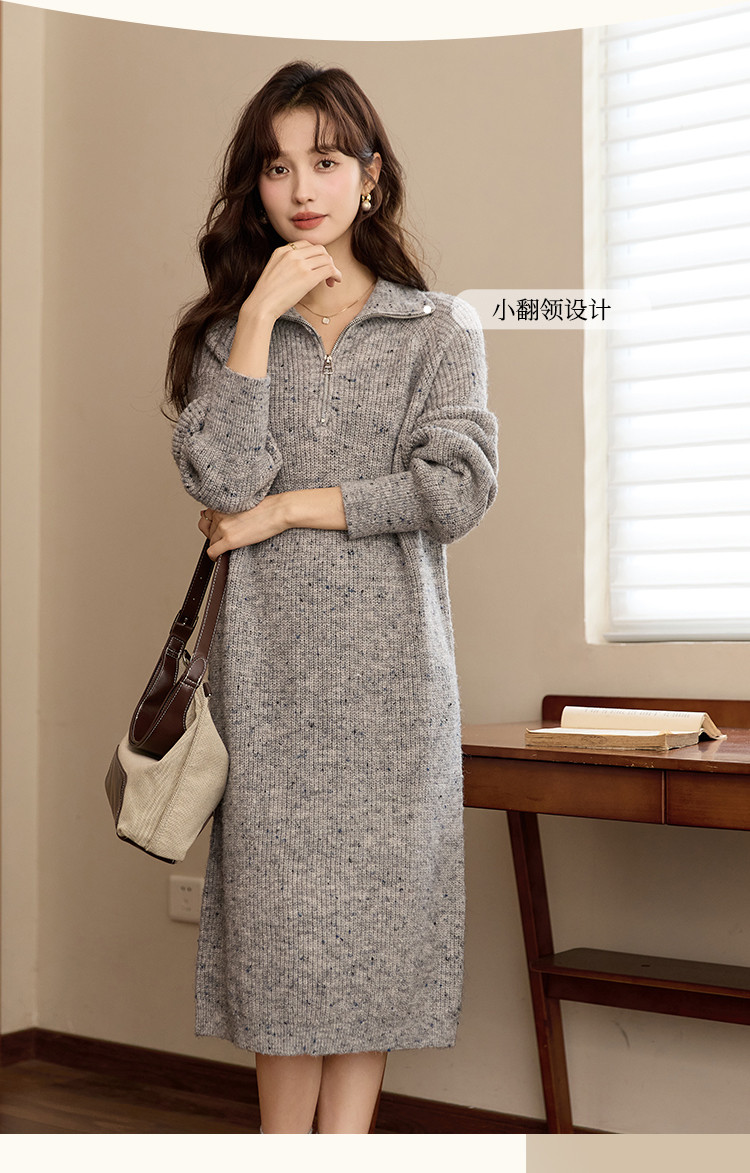 商品名称:【百搭慵懒】春秋半开领打底中长款毛衣裙时尚显瘦减龄针织连衣裙 189505