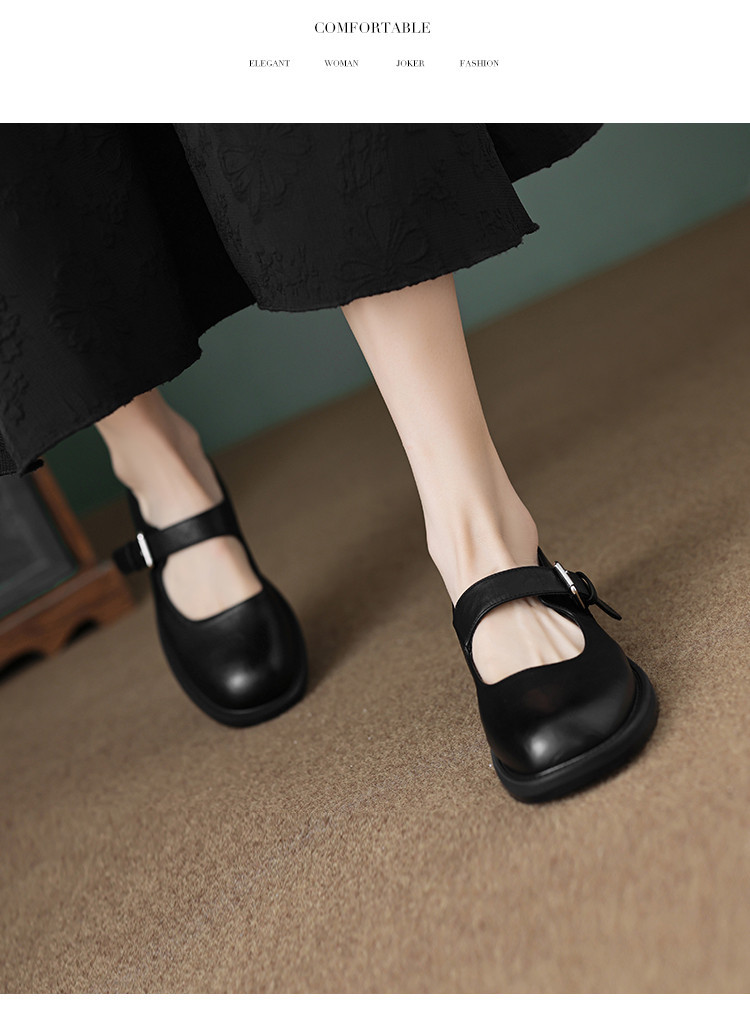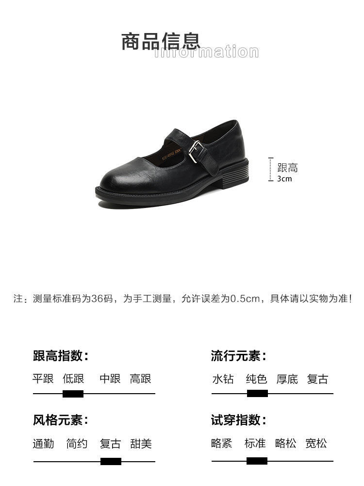 商品名称:2024秋季简约百搭甜酷复古日常通勤纯色圆头玛丽珍女单鞋 651713