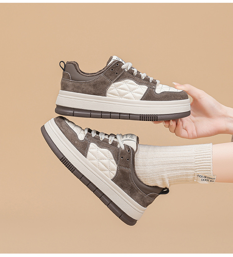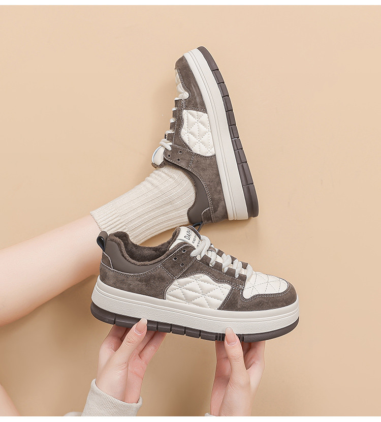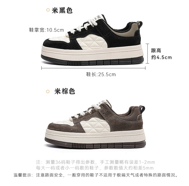 秋冬加绒厚底时尚板鞋增高鞋百搭运动休闲鞋舒适保暖简约风女鞋 277783
