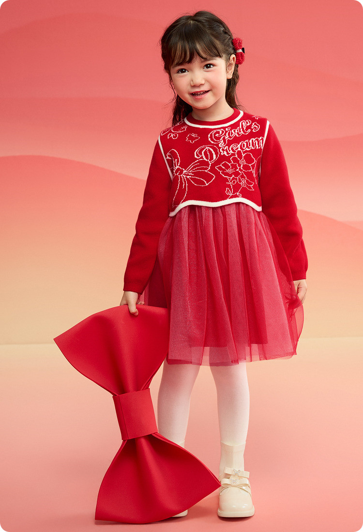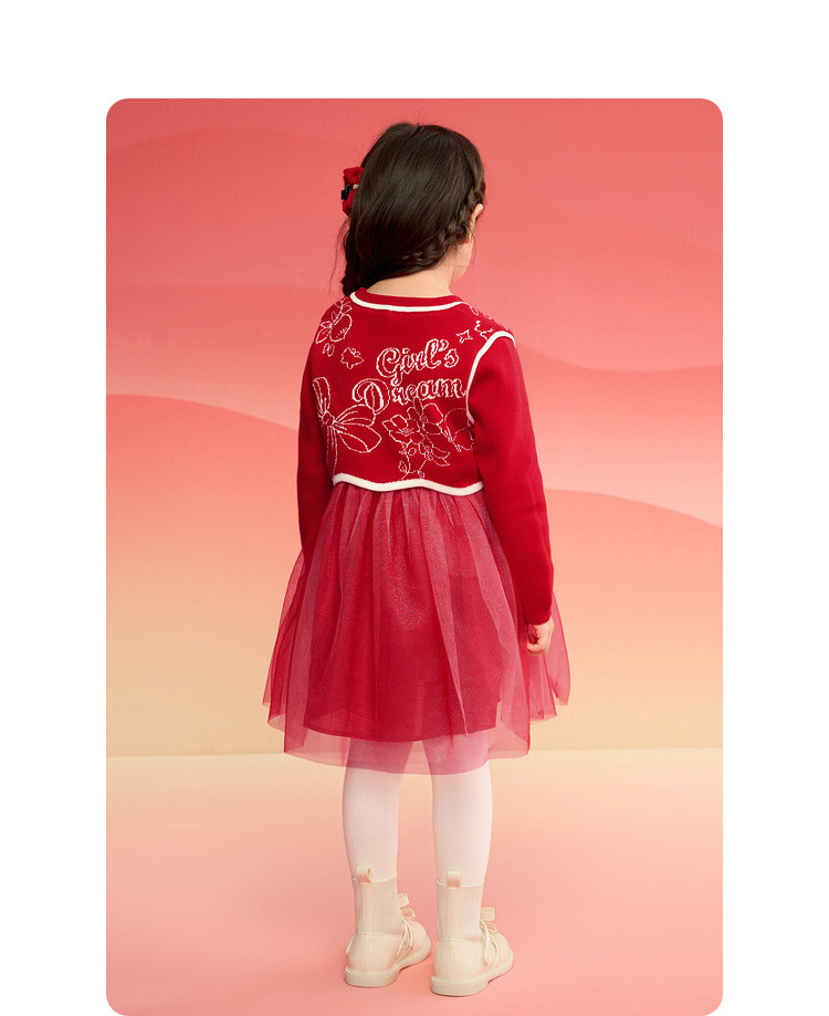 商品名称:新中式网纱假两件服儿童裙子女童连衣裙2025春秋新款童装宝宝 696069