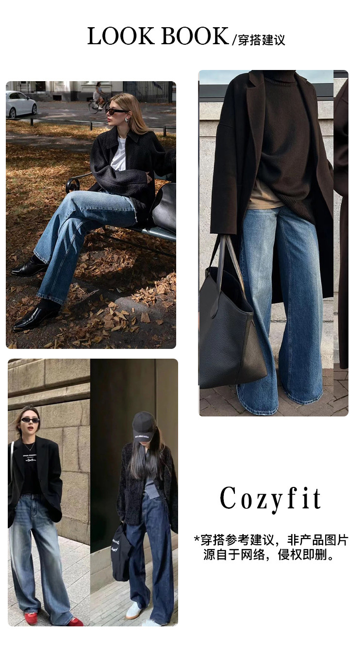 商品名称:【垂感拖地阔腿裤】高腰宽松显瘦直筒裤春秋季热销复古风牛仔裤女 230785