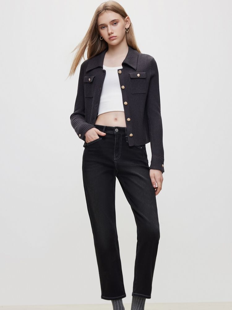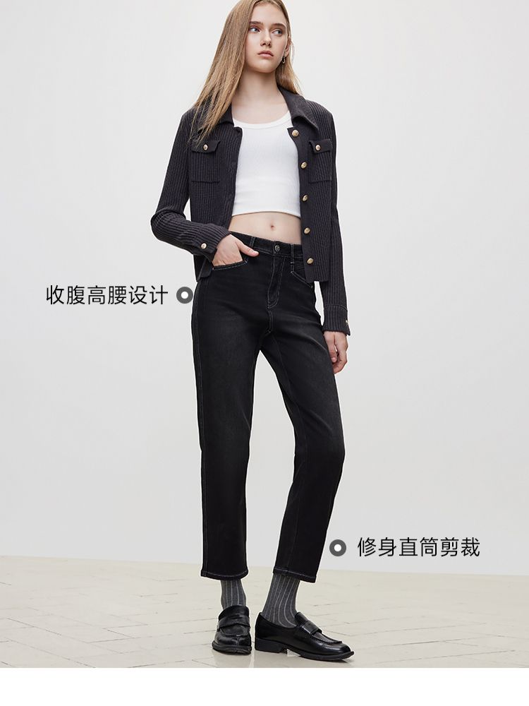 商品名称:【直筒九分裤】冬季修身显瘦高腰牛仔裤女 822106