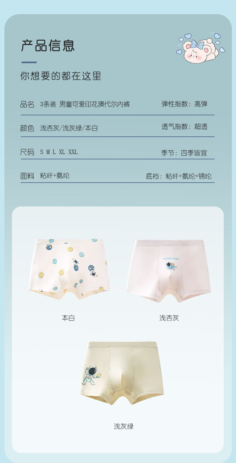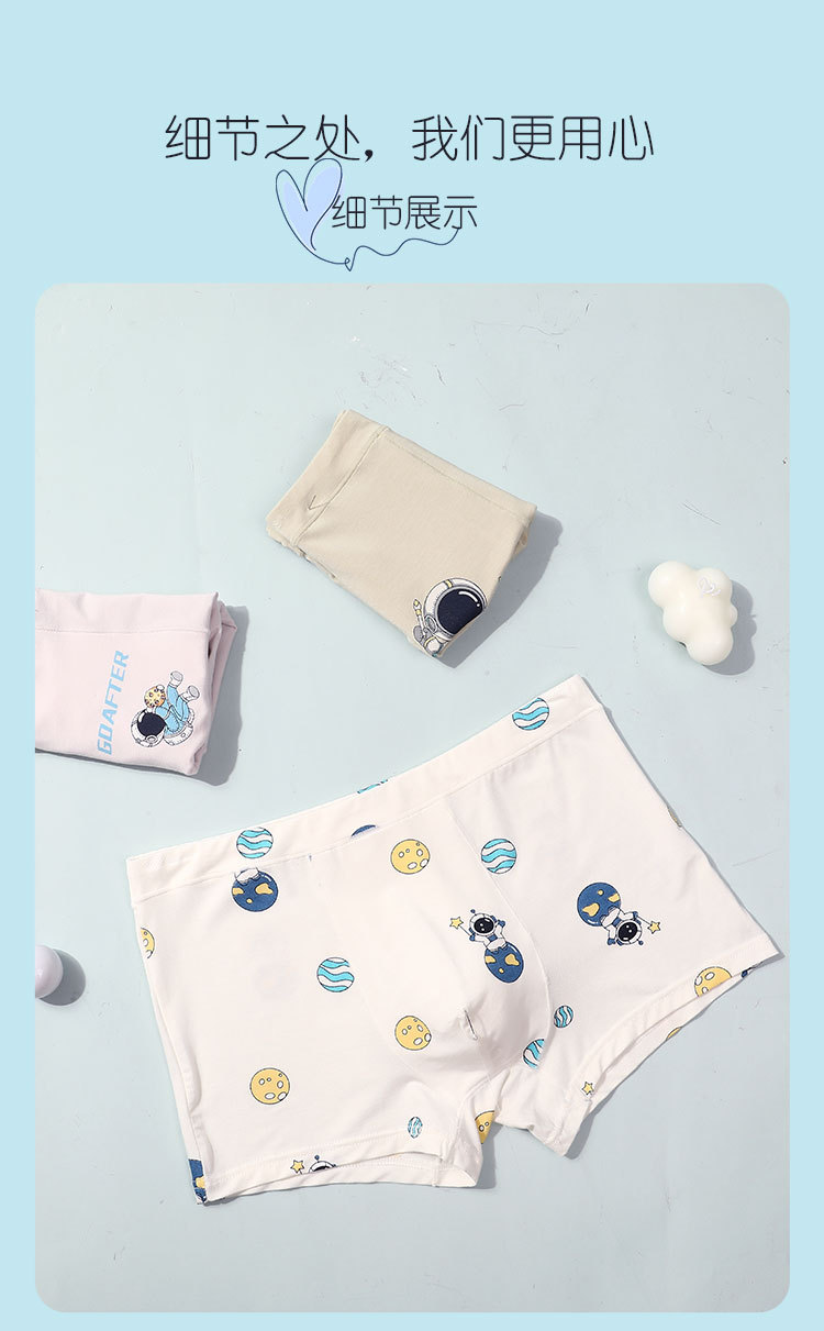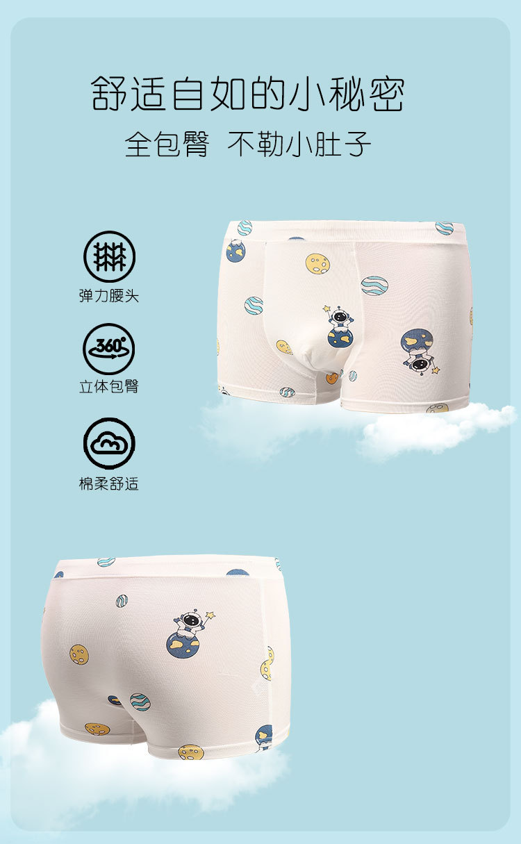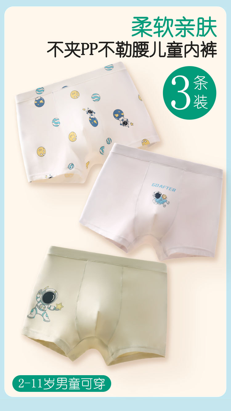 商品名称:钜惠出清【3条装】超柔亲肤手感卡通航天系儿童内裤男童平角裤薄 278366
