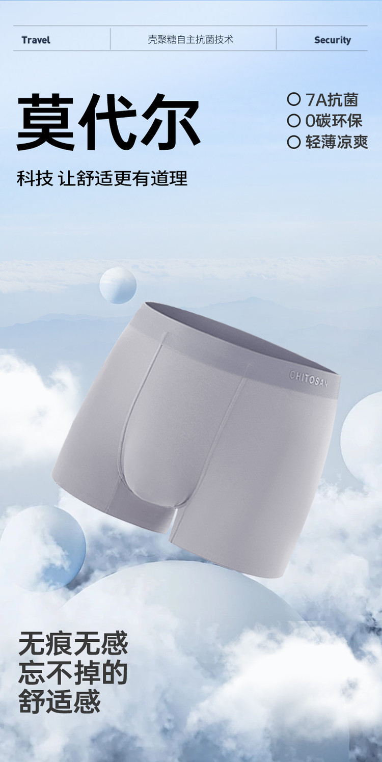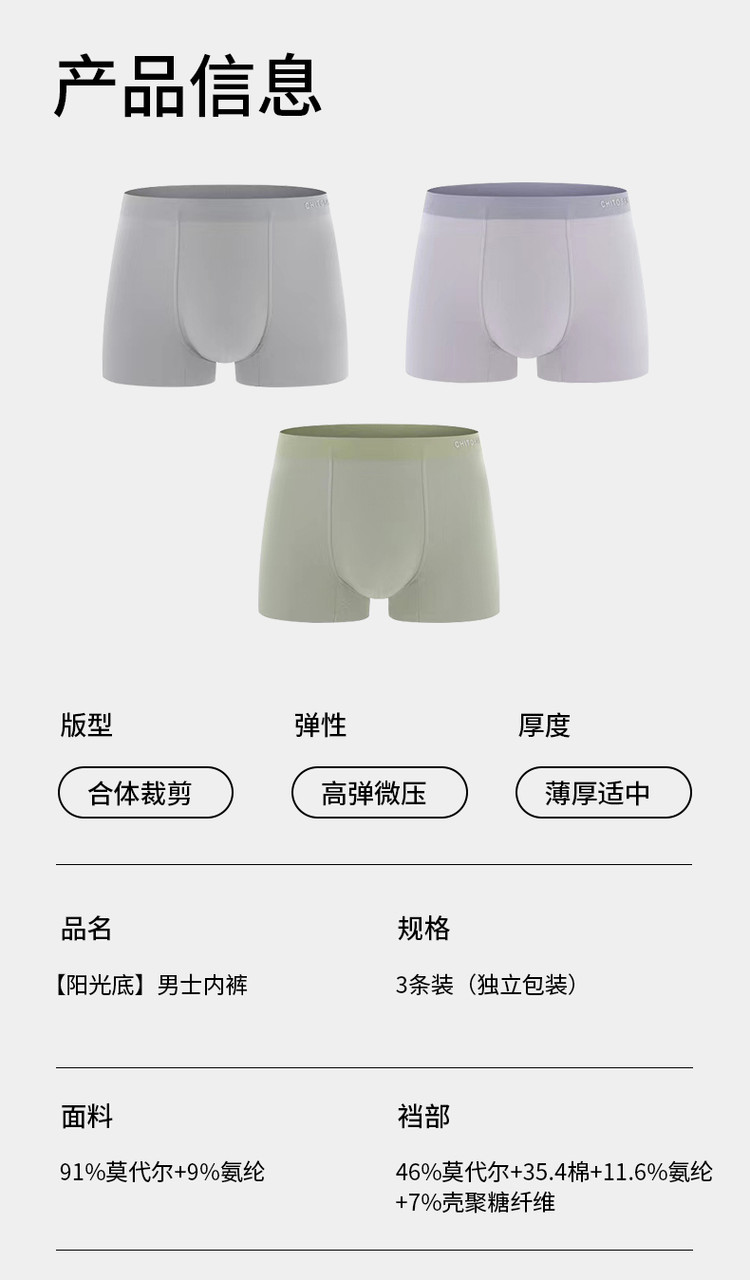 商品名称:【3条装抑菌】棉平角男士内裤中腰平角短裤莫代尔青少年聚壳糖 463755