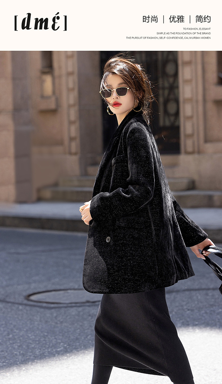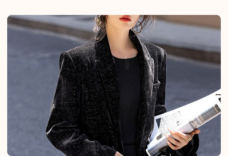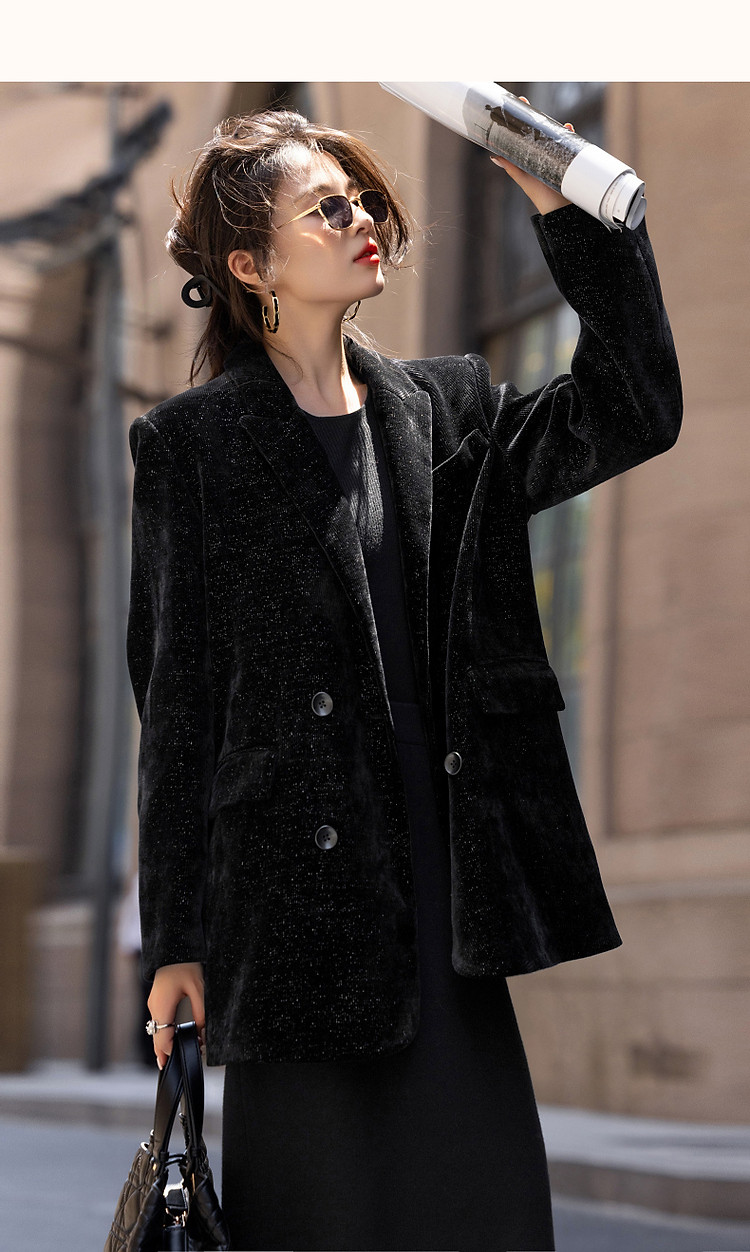 商品名称:【时髦职场人】冬格雷系灯芯绒商务西服翻驳领双排扣短西装外套女 901889