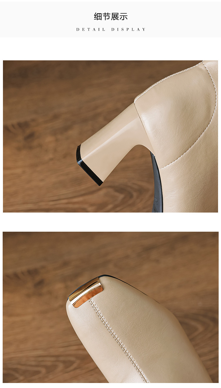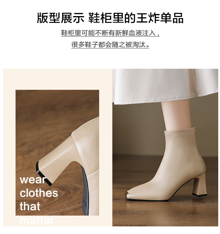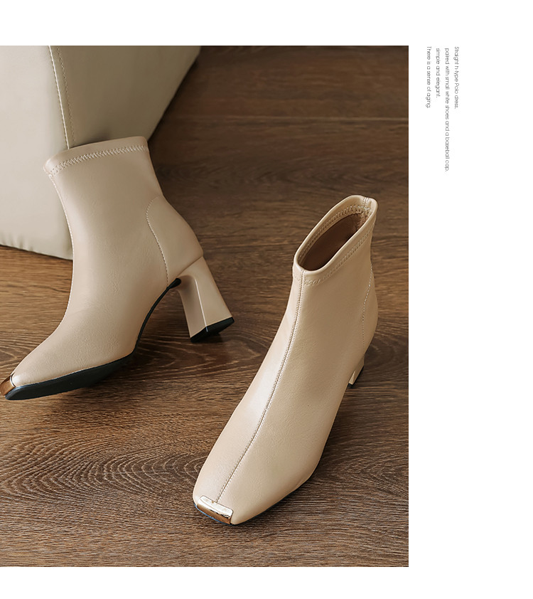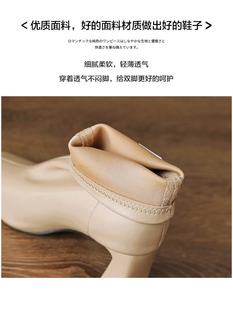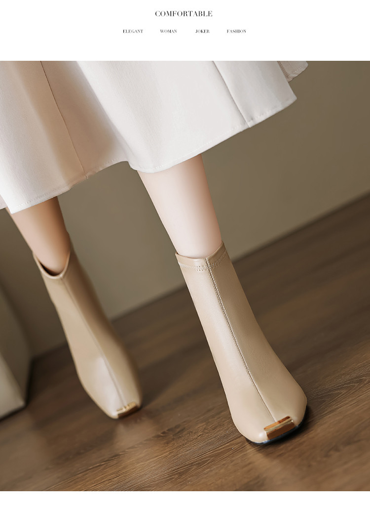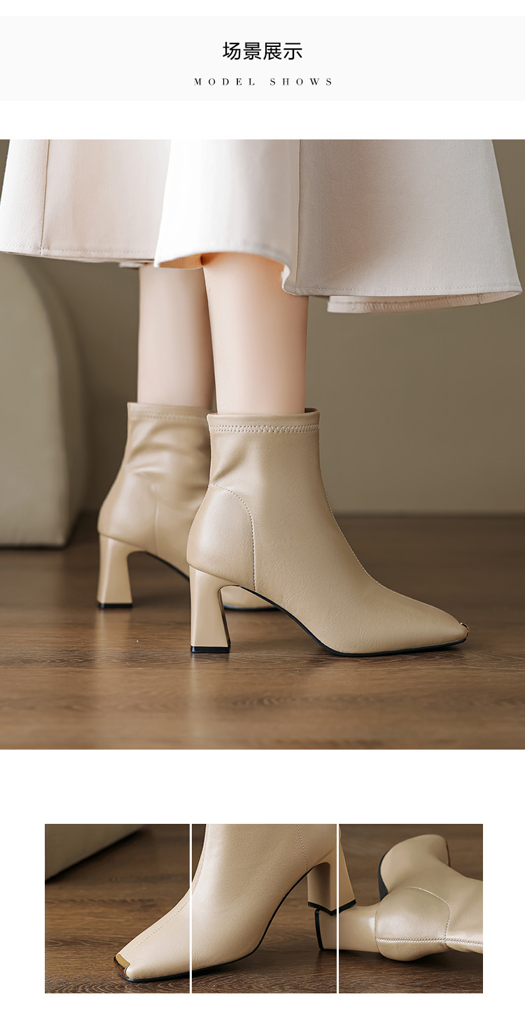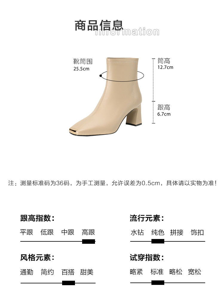 商品名称:冬季时尚简约优雅日常百搭纯色气质小铁头高跟瘦瘦靴女靴 399873