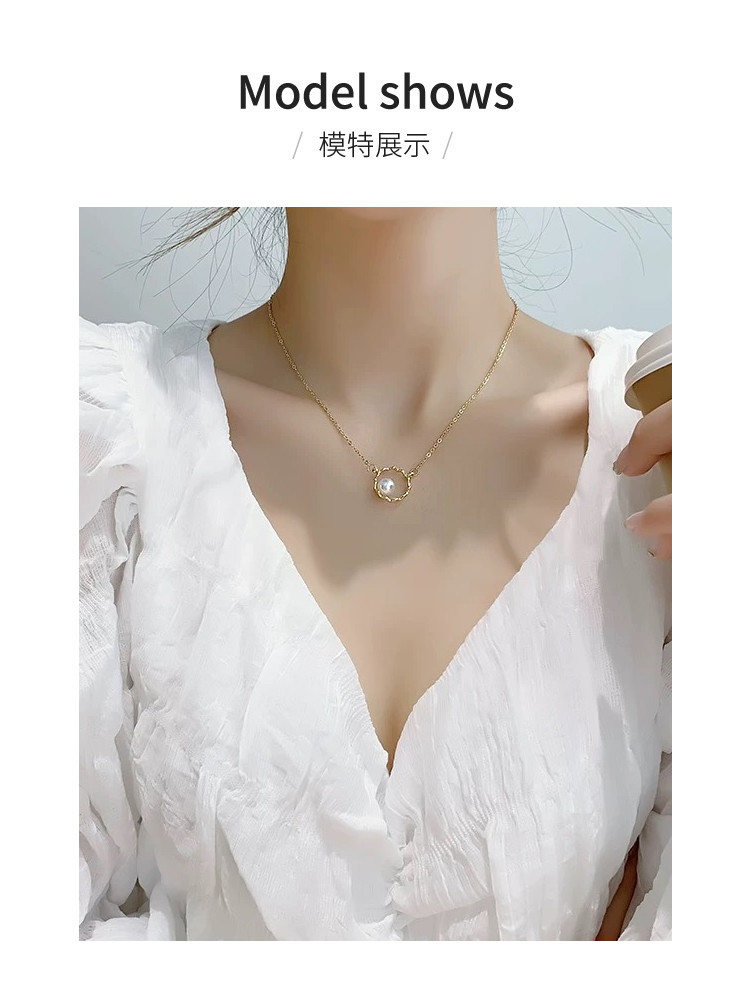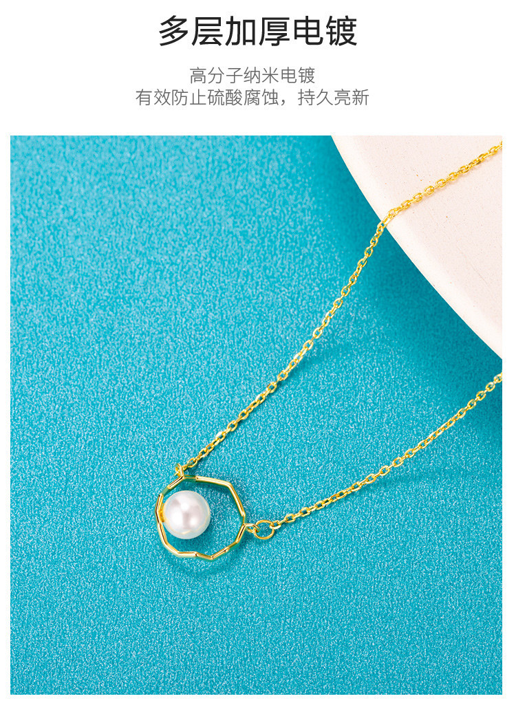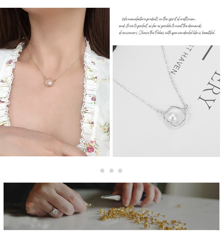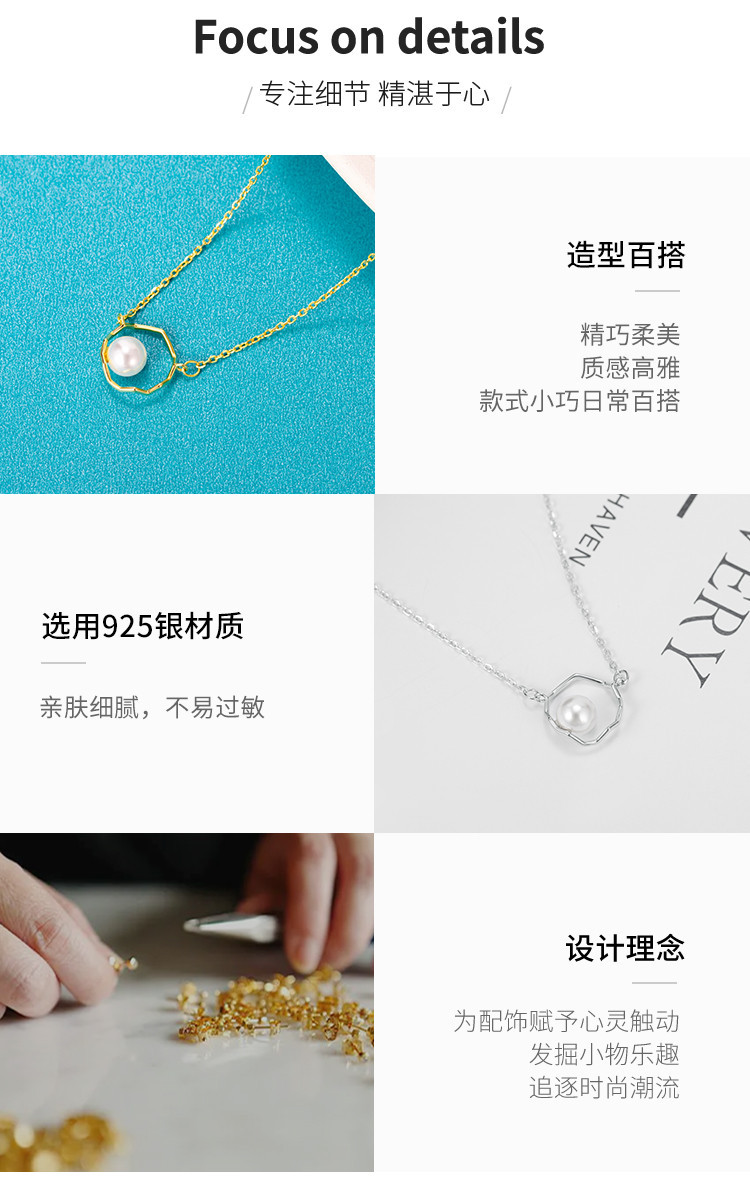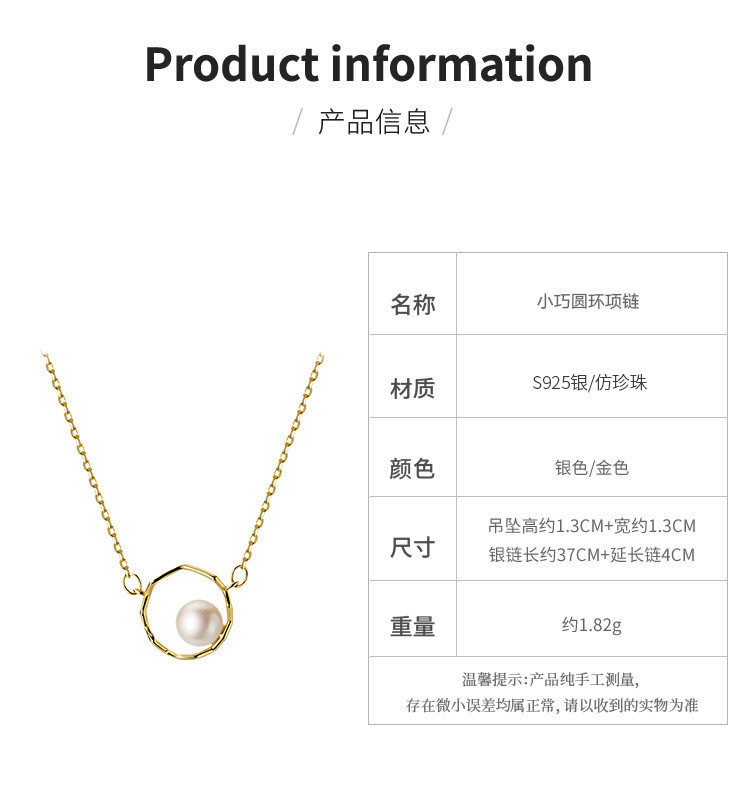 商品名称:s925银简约镂空圆环贝珠吊坠项链高级感气质锁骨链女 189569