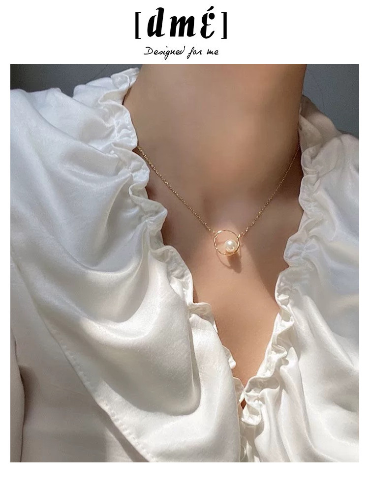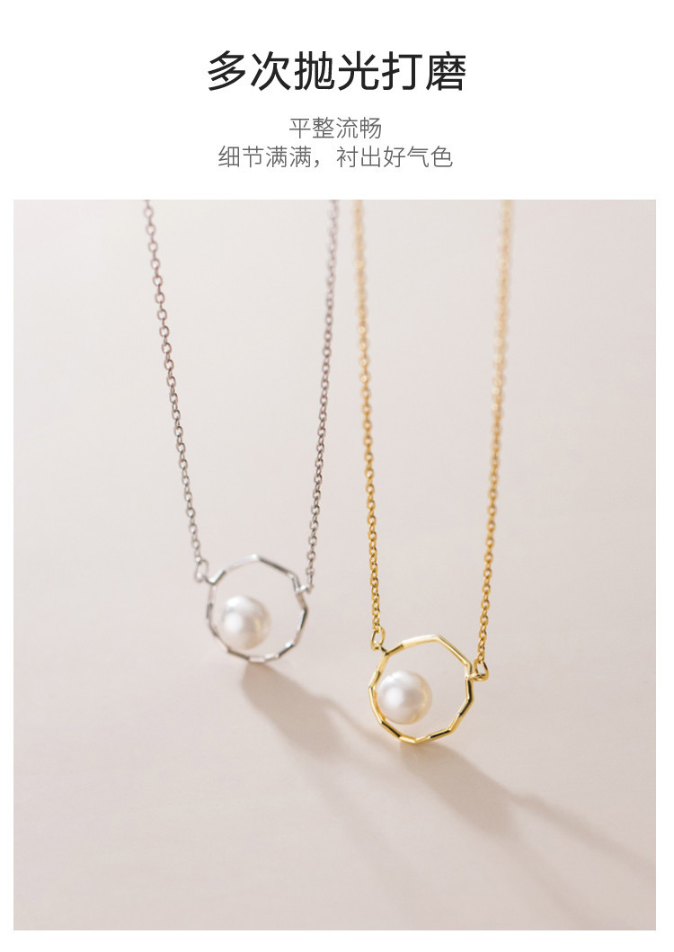 s925银简约镂空圆环贝珠吊坠项链高级感气质锁骨链女 189569