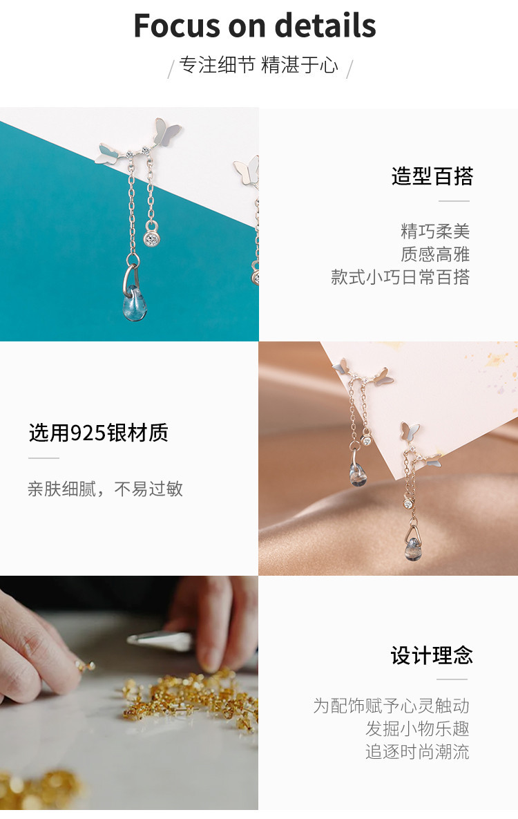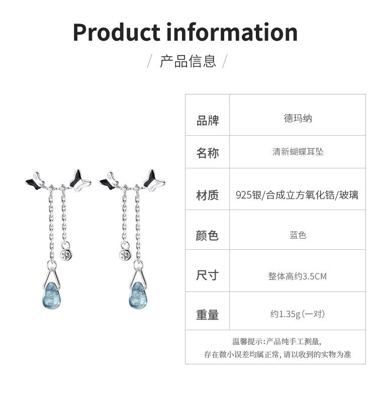 商品名称:925银小清新蝴蝶耳坠温柔仙气气质长款流苏耳环耳饰 312449