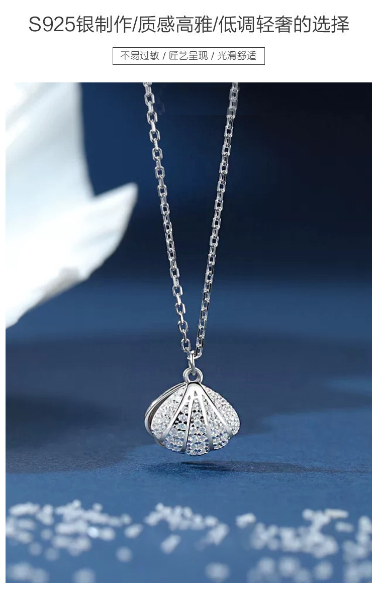 商品名称:S925银贝壳海洋之心项链女高级感气质锁骨链轻奢小众吊坠 205953