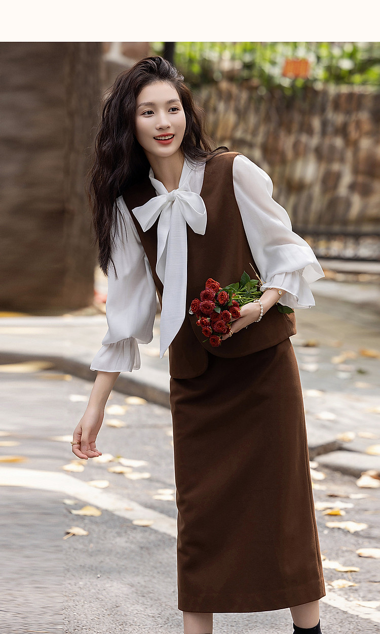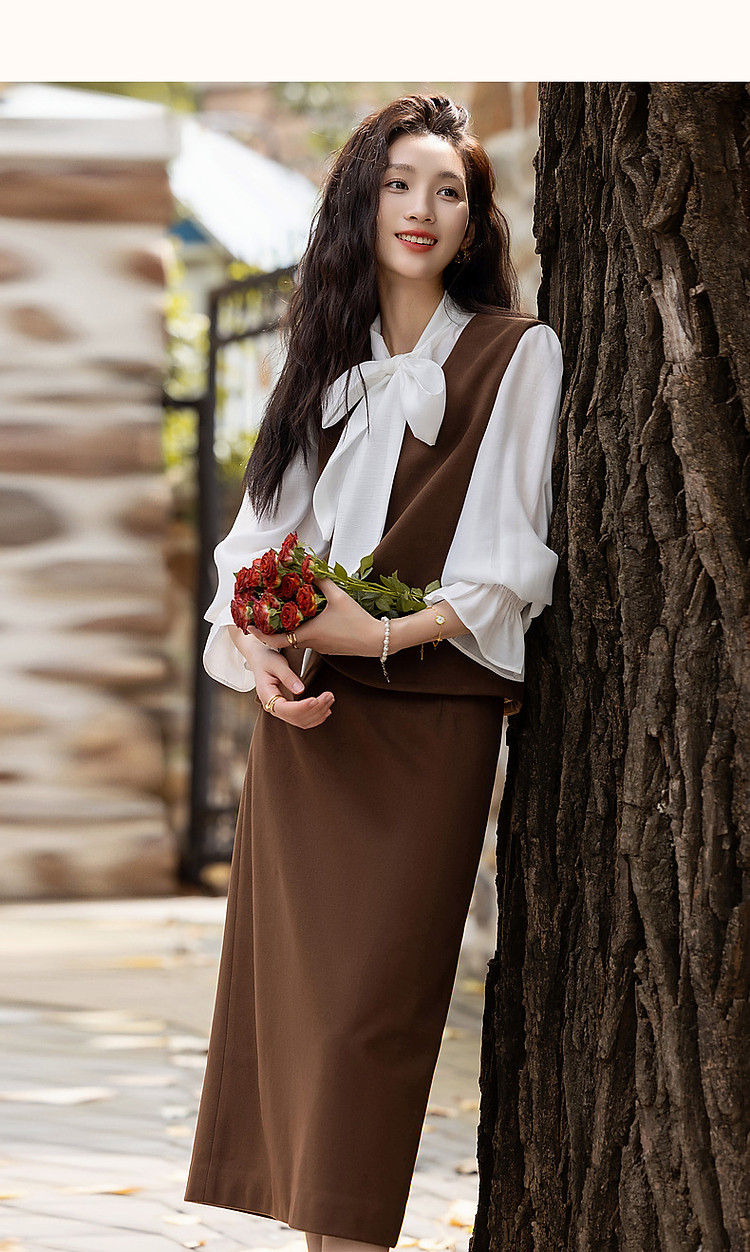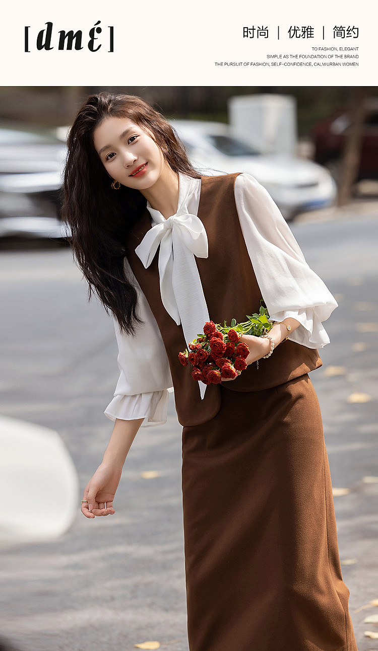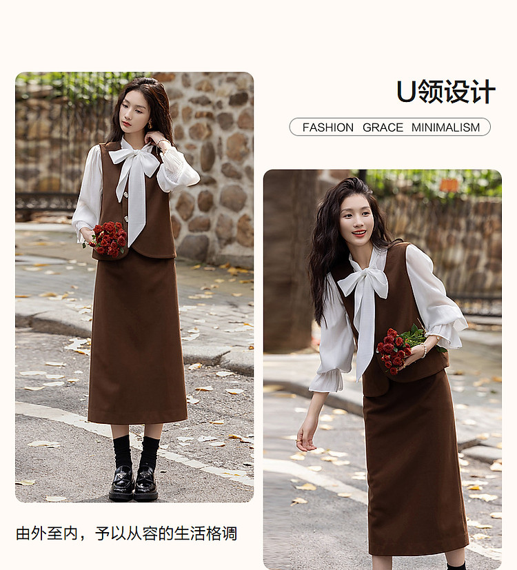 商品名称:【乖乖女】春秋懒人免搭套装U领上衣藏肉半身裙两件套女时尚 559745