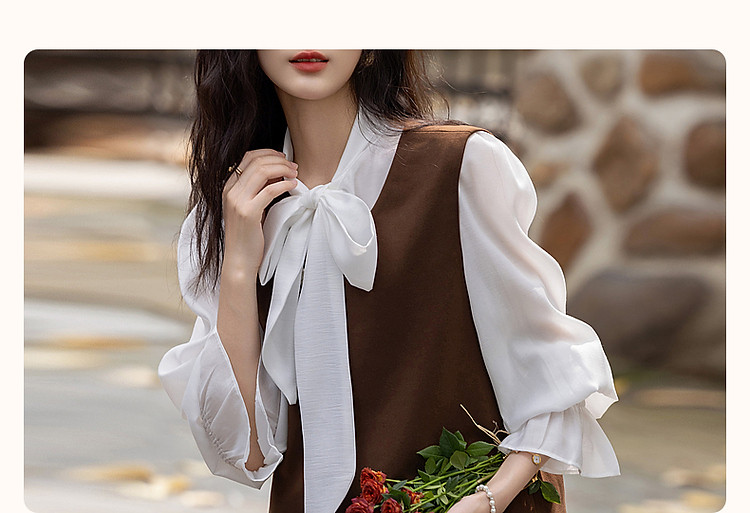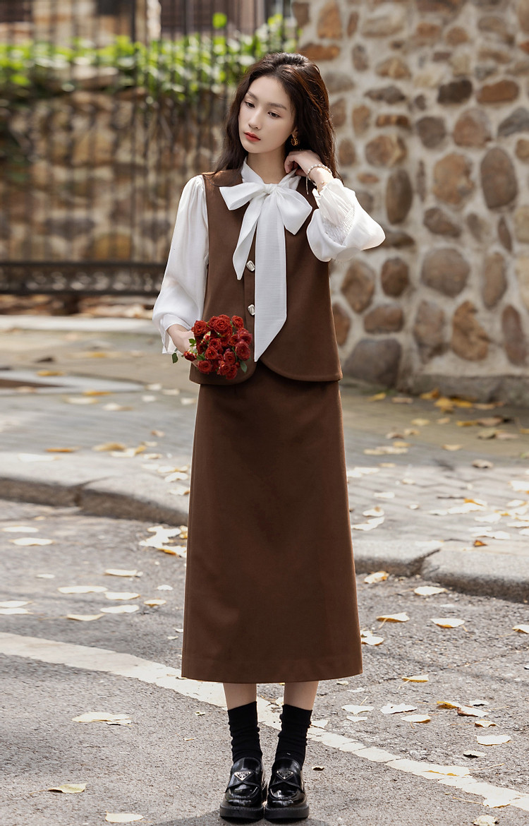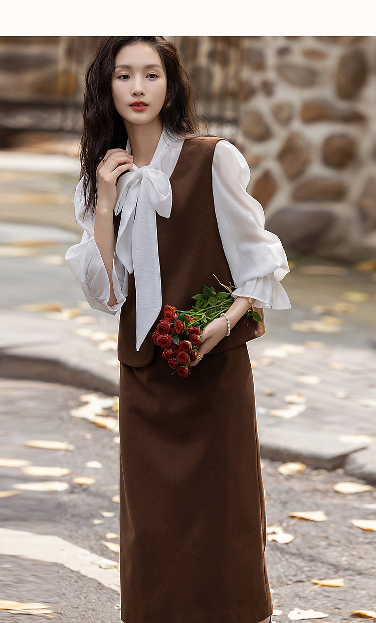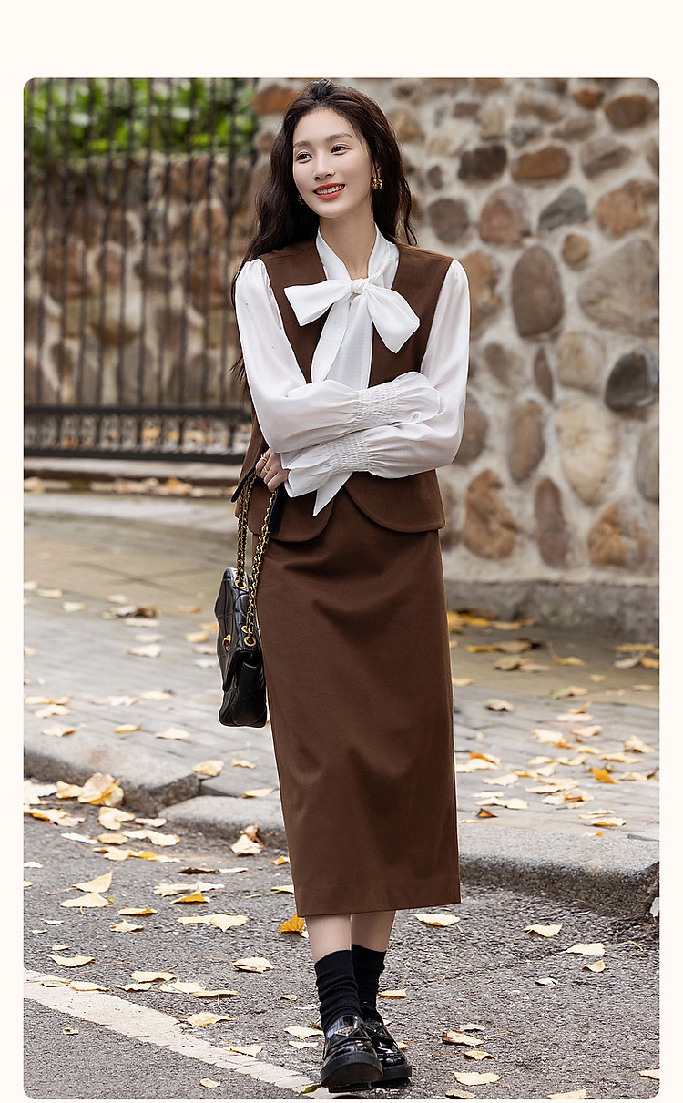 【乖乖女】春秋懒人免搭套装U领上衣藏肉半身裙两件套女时尚 559745