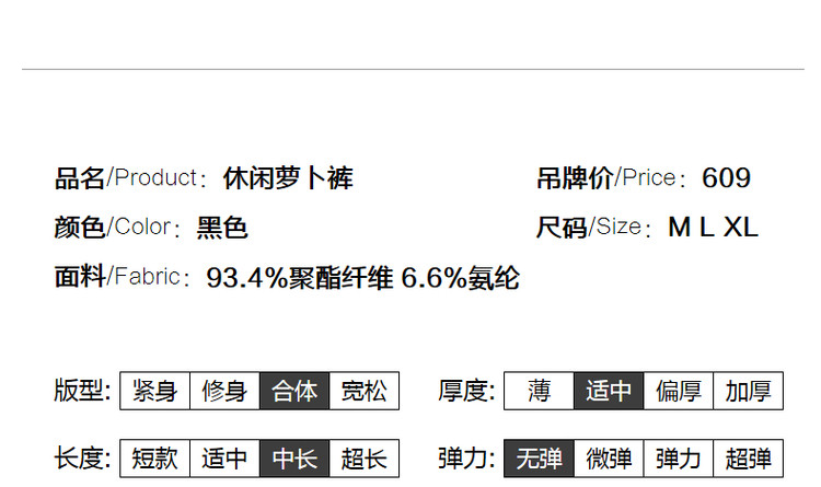 商品名称:【瘦瘦萝卜裤】冬季新通勤松紧腰长裤铅笔裤打褶休闲裤子女 805313