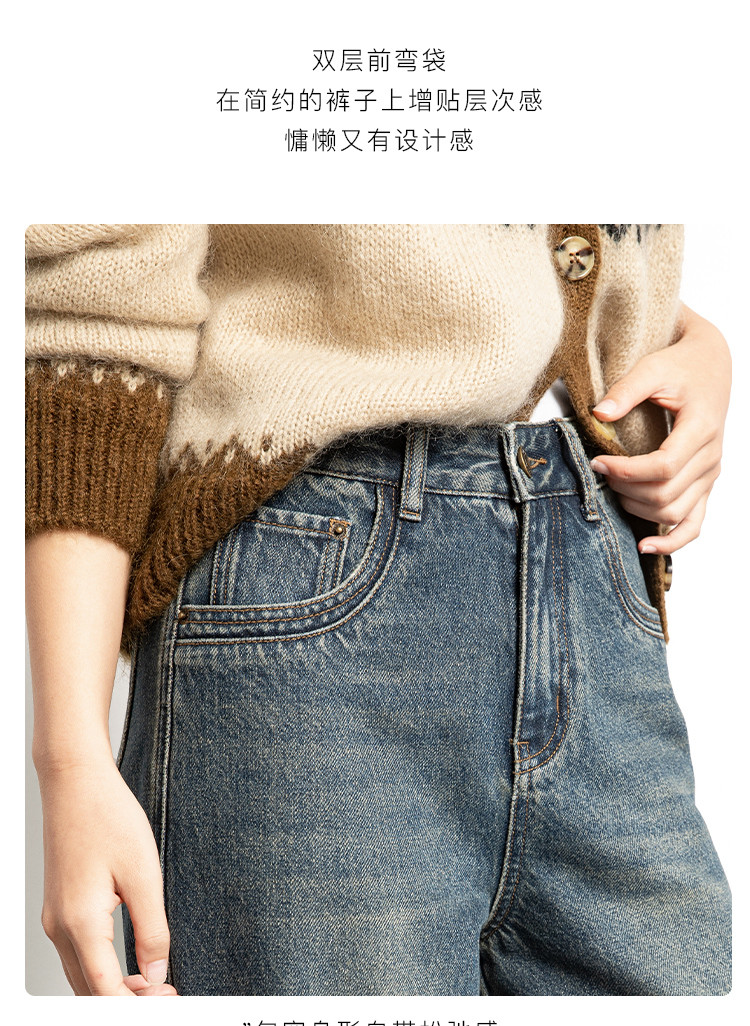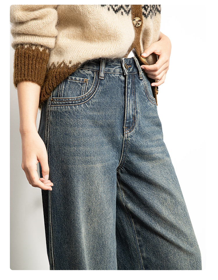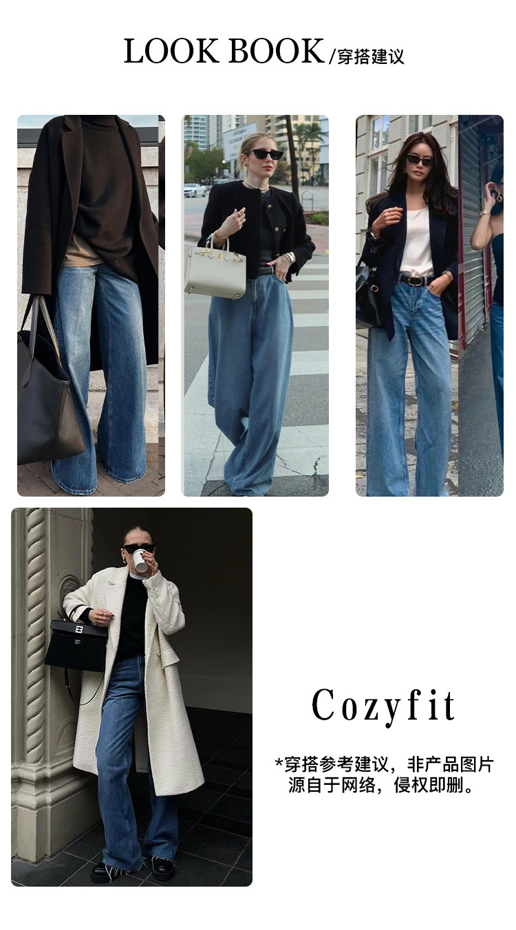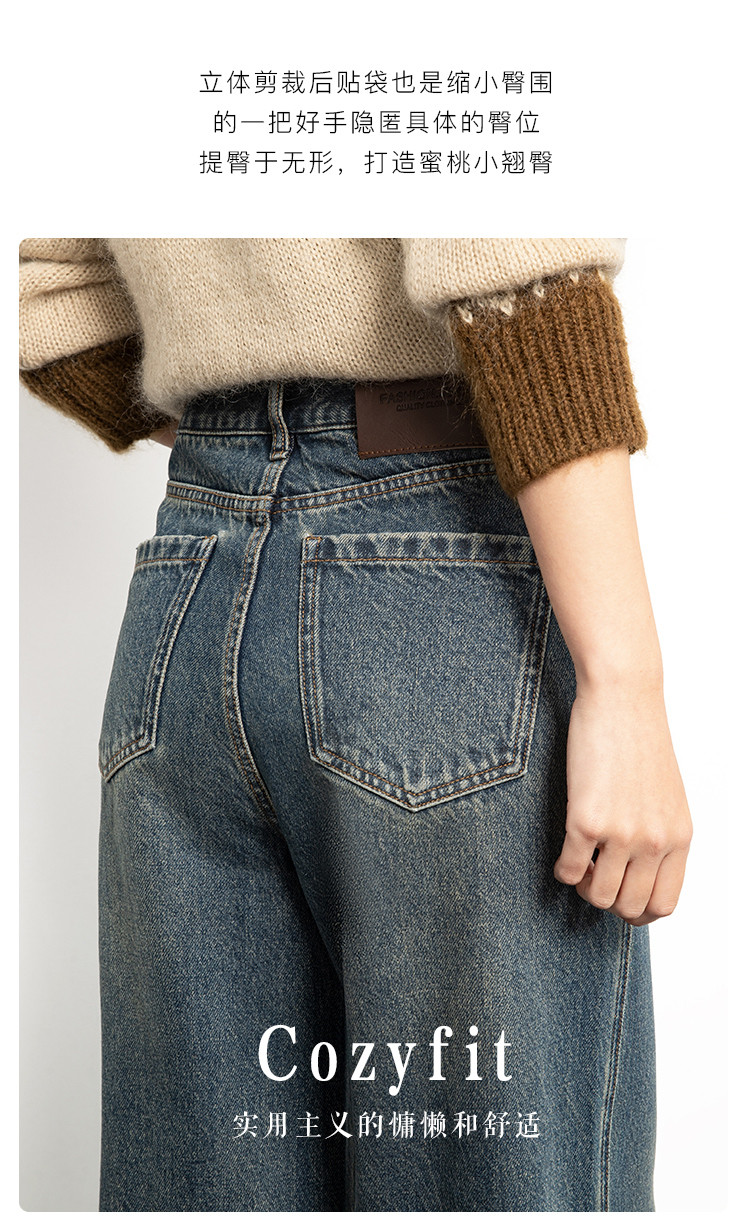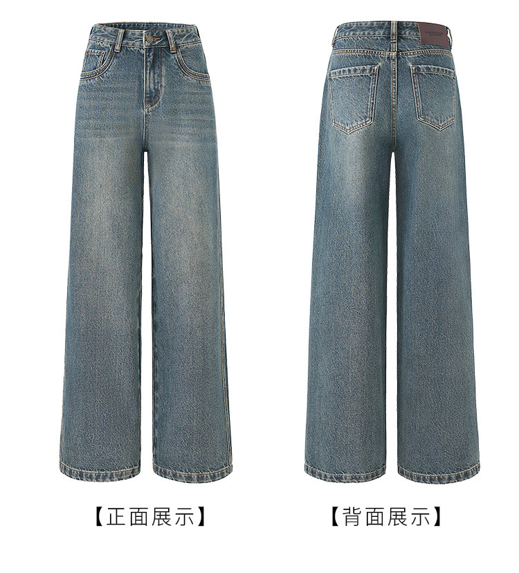 商品名称:【雾岛牛仔】春秋季爆款复古水洗显高显瘦拼接直筒阔腿牛仔裤女 552769