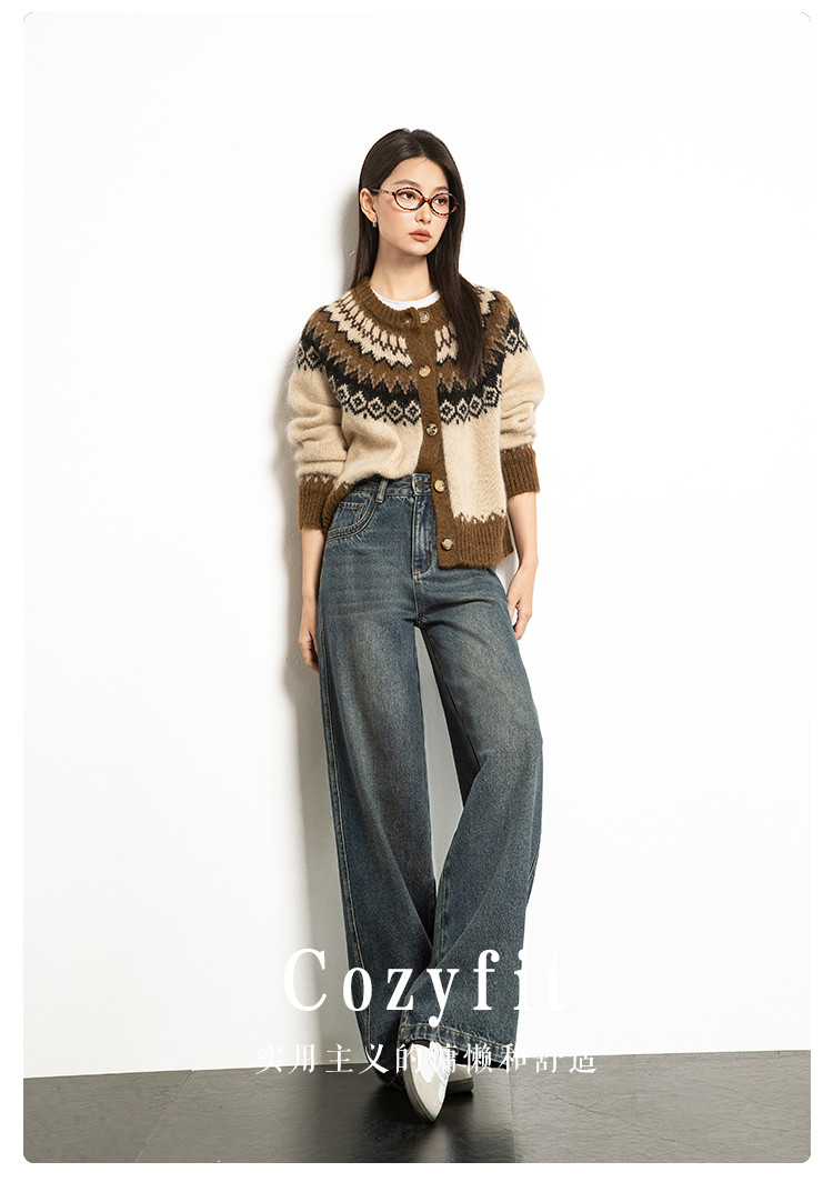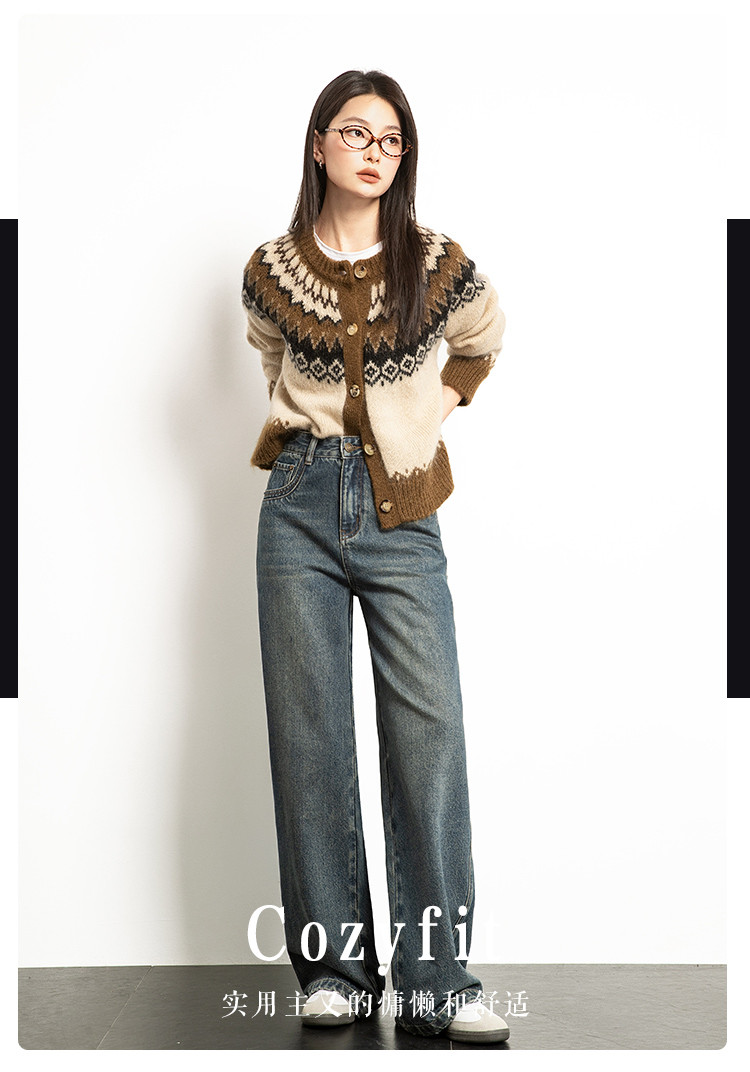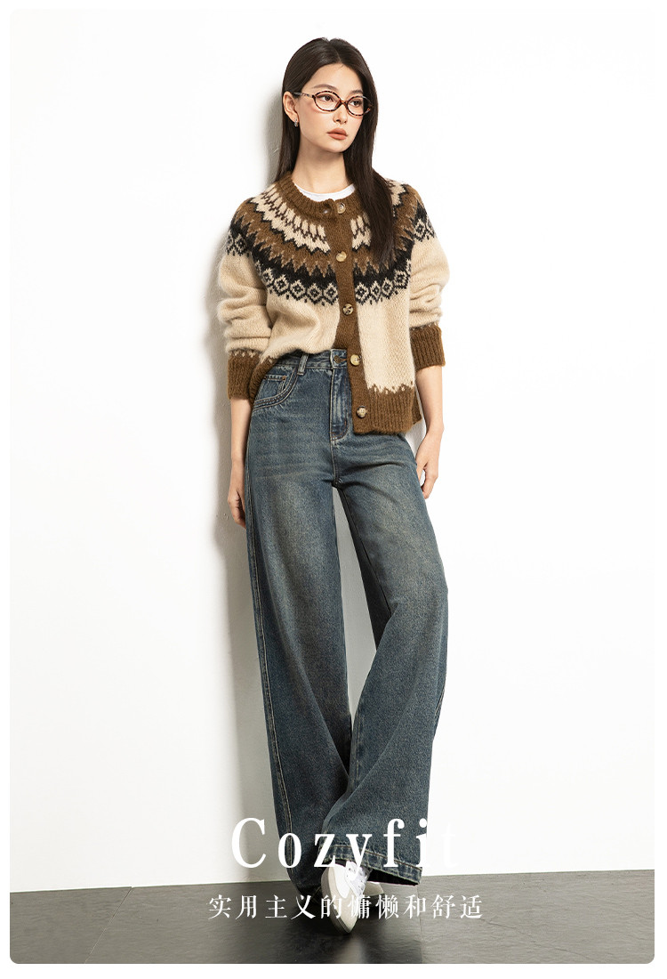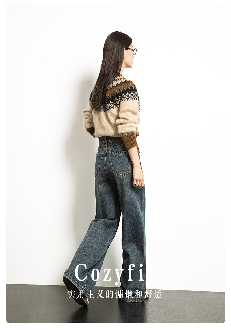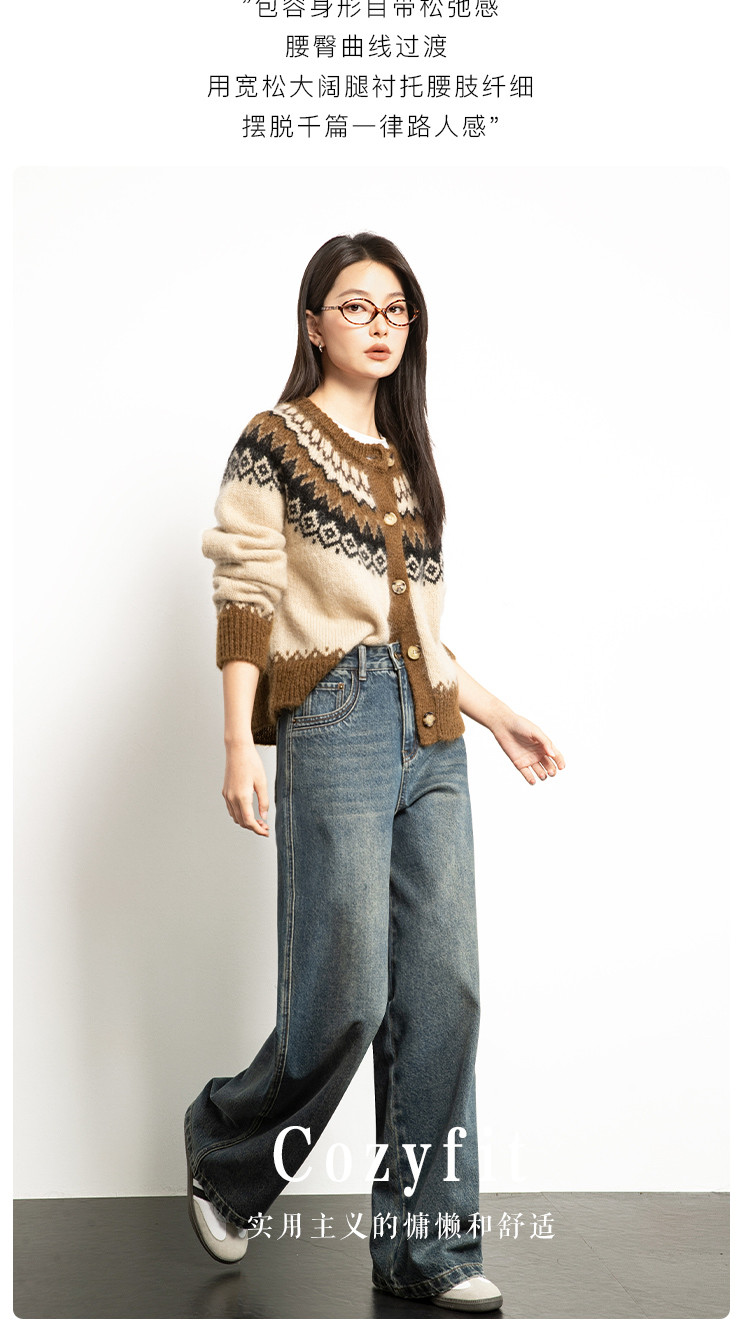 商品名称:【雾岛牛仔】春秋季爆款复古水洗显高显瘦拼接直筒阔腿牛仔裤女 552769