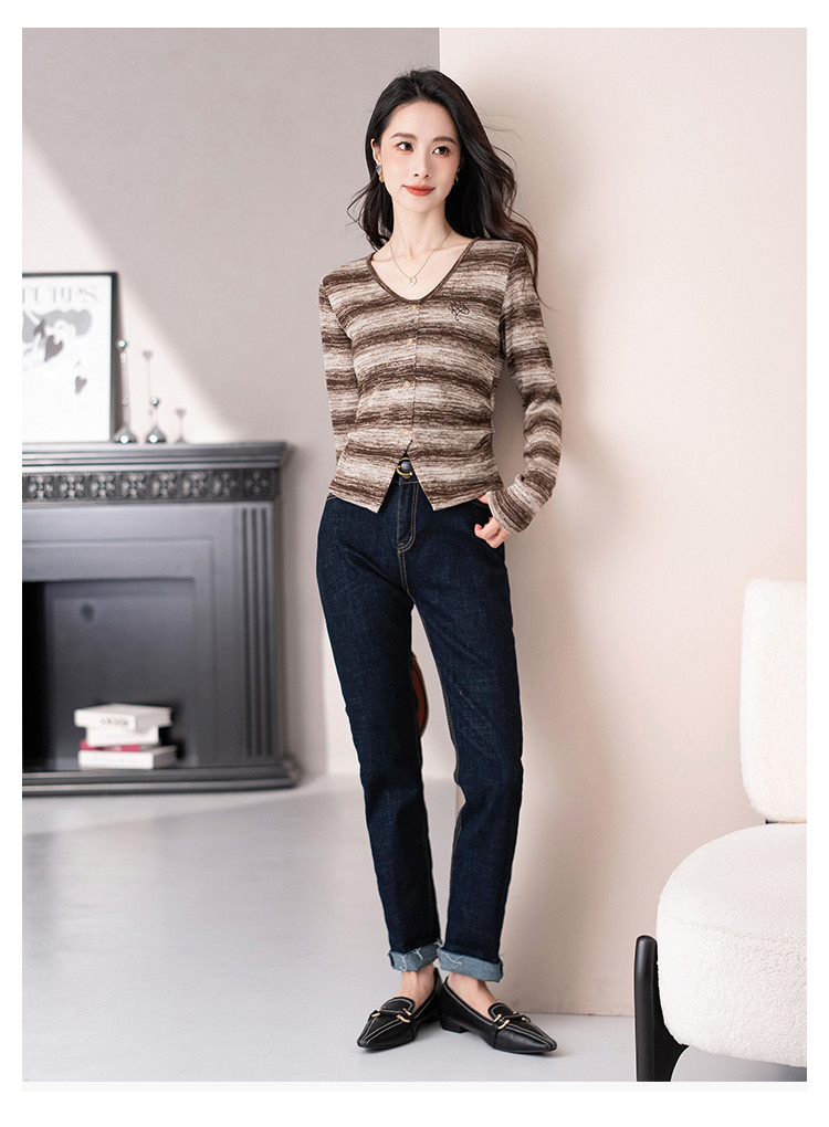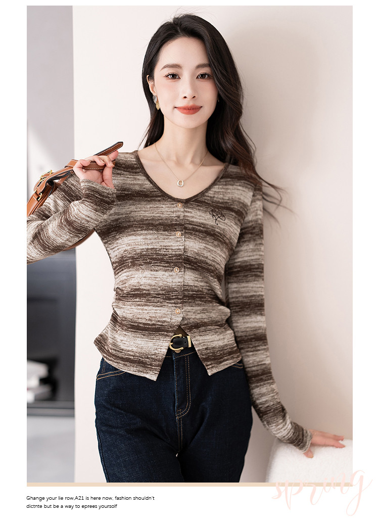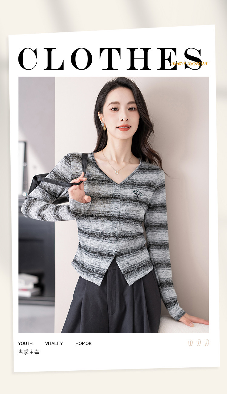 【修身短款】夏季修身显瘦V领开衫长袖短款T恤女 952922