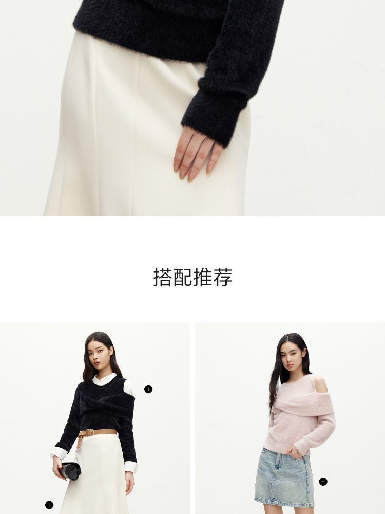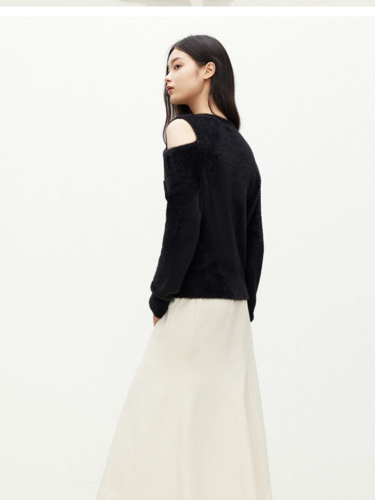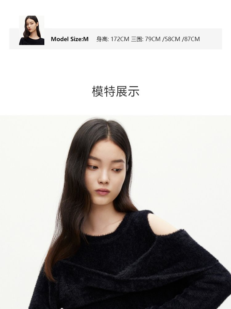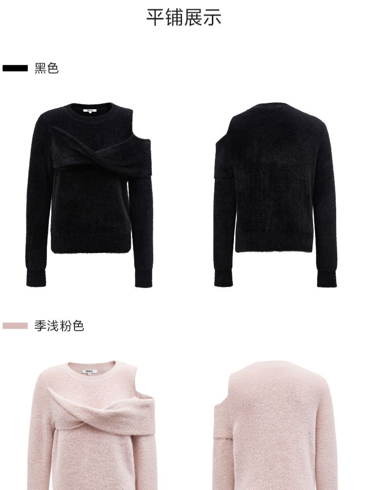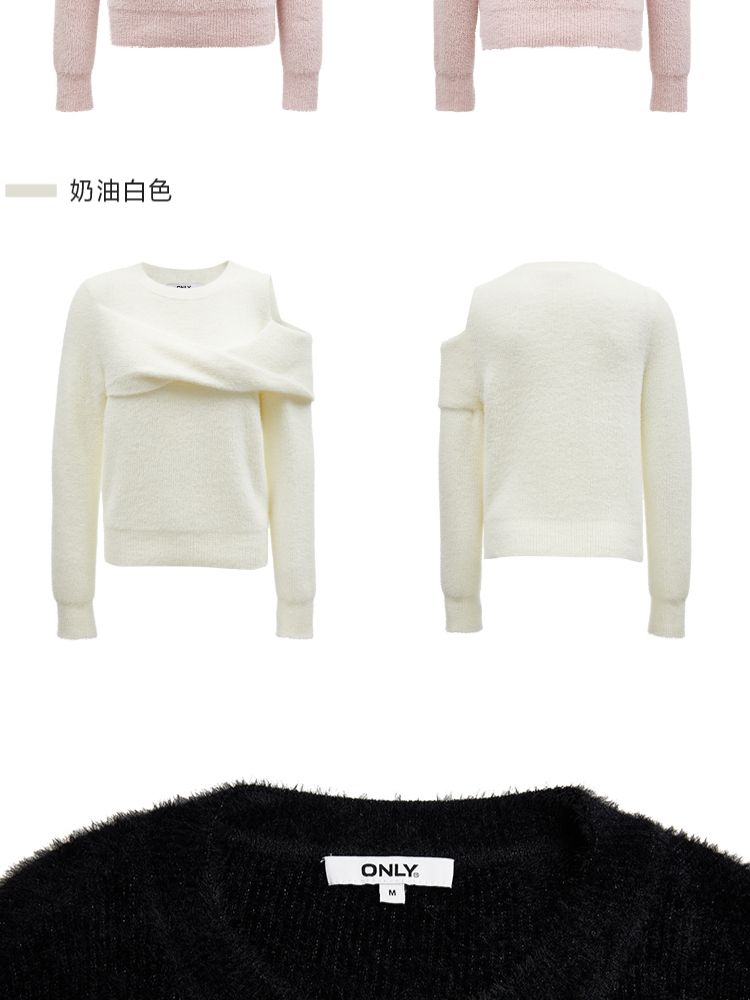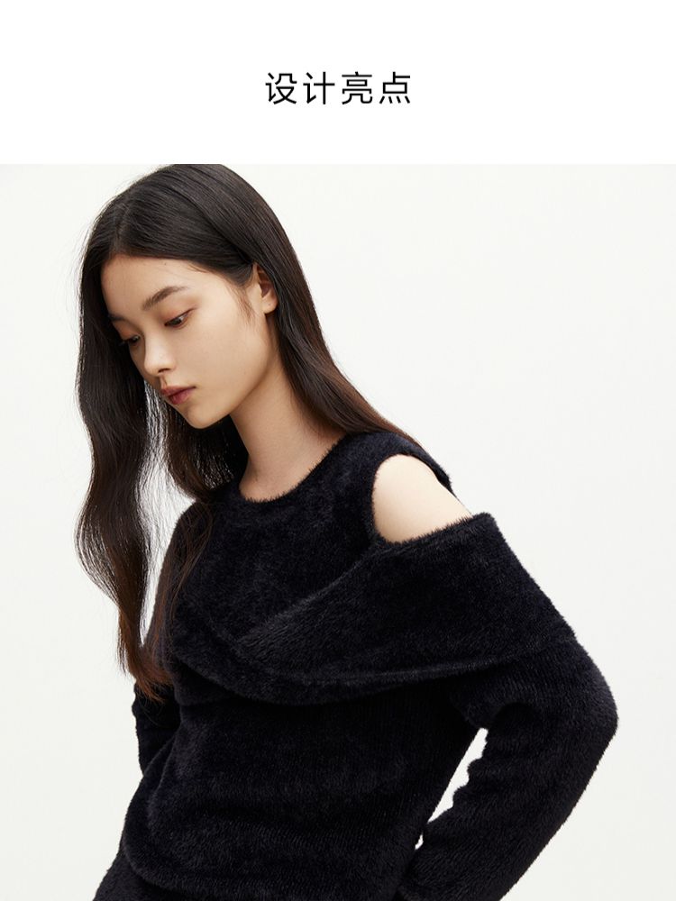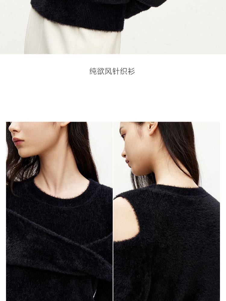 商品名称:【设计感】春季百搭慵懒设计感圆领露肩纯色针织衫女 021978