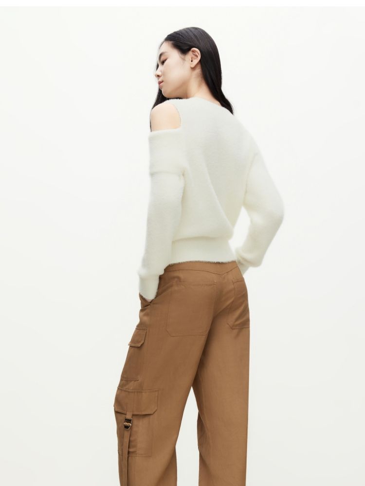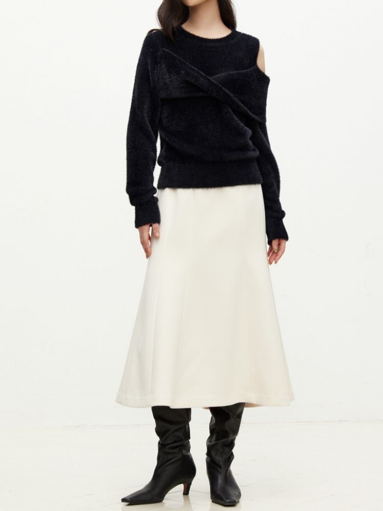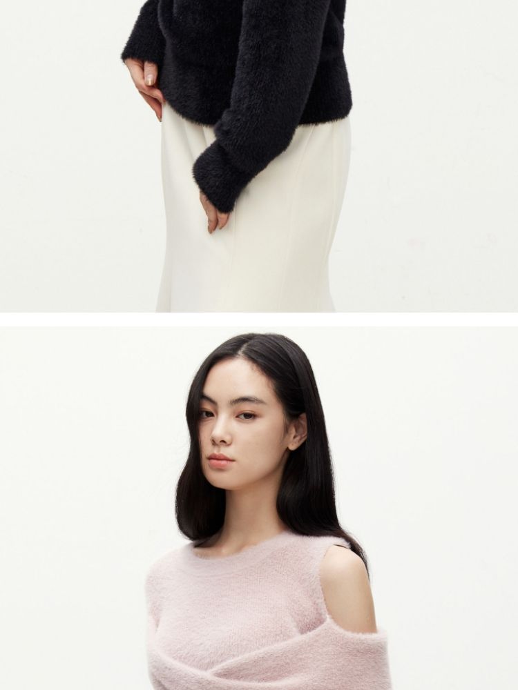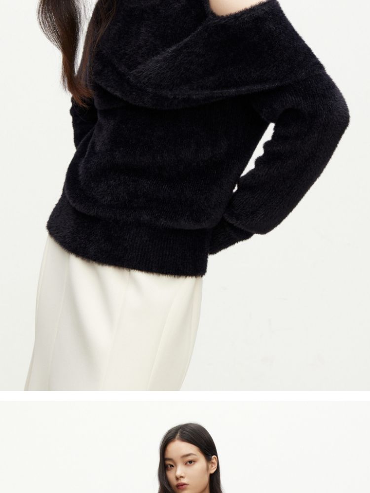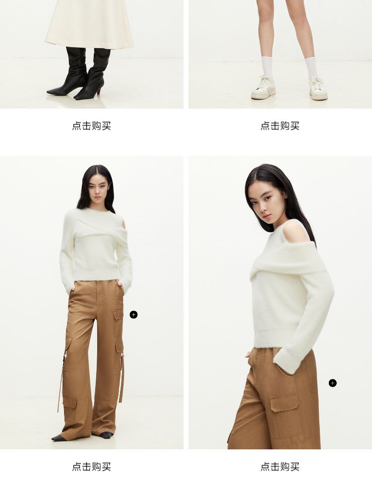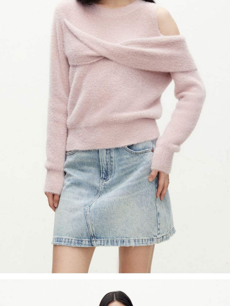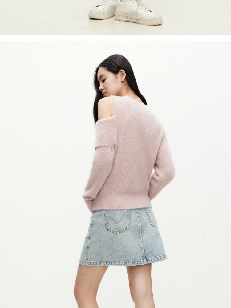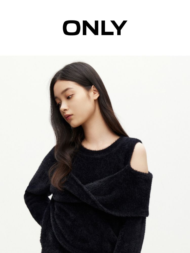 商品名称:【设计感】春季百搭慵懒设计感圆领露肩纯色针织衫女 021978