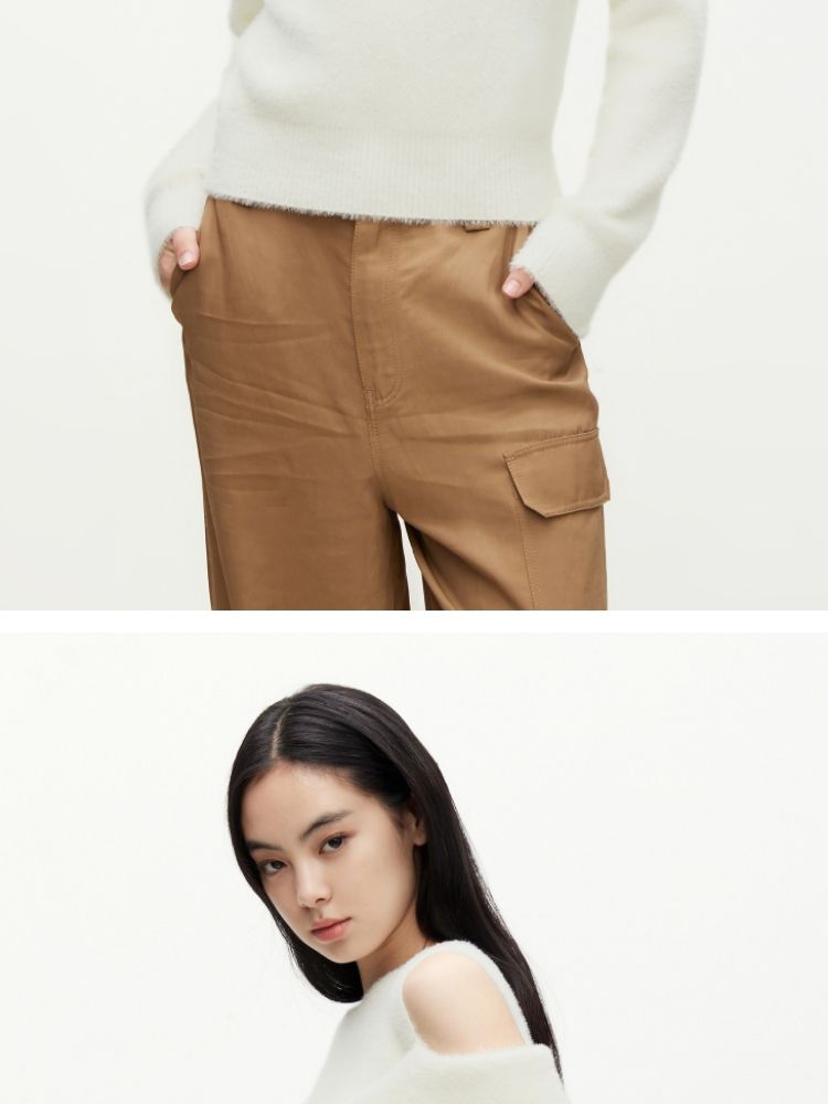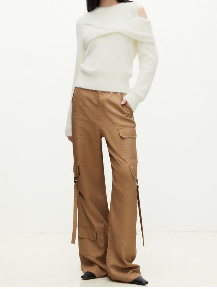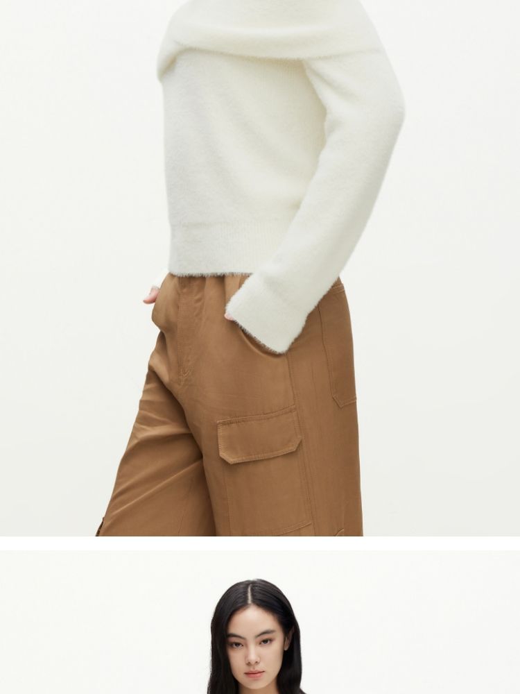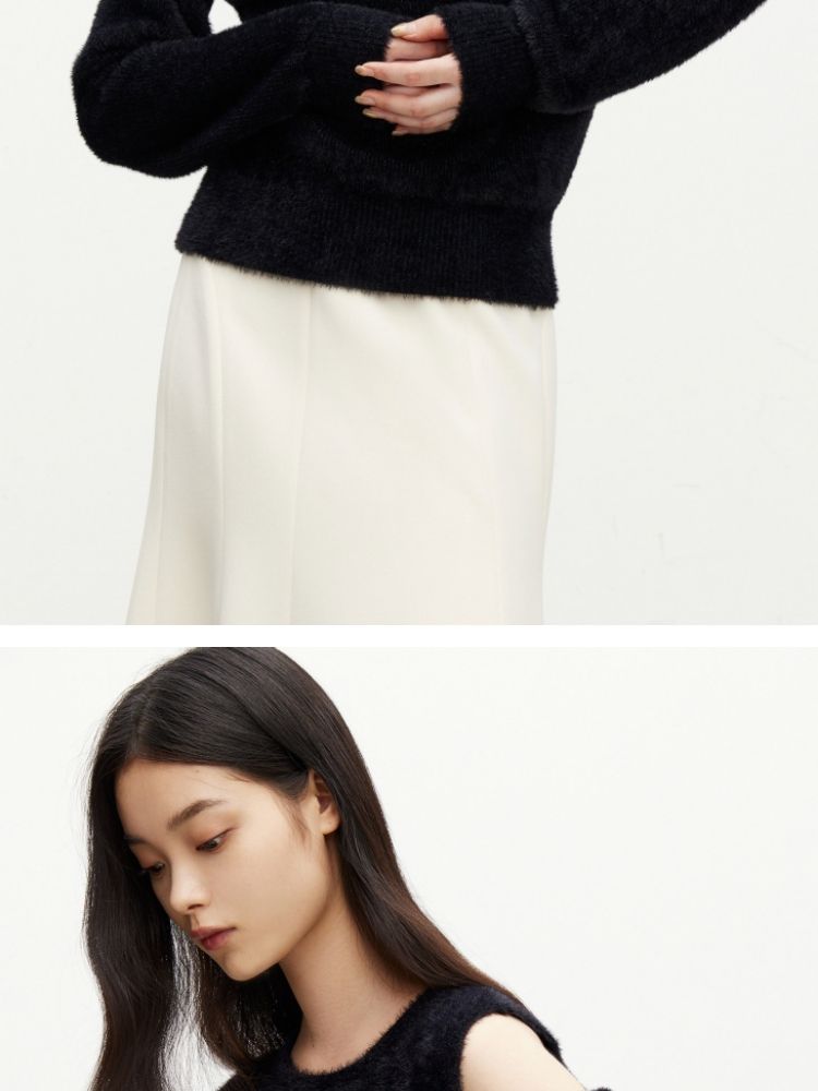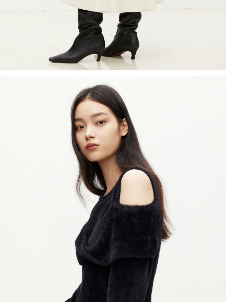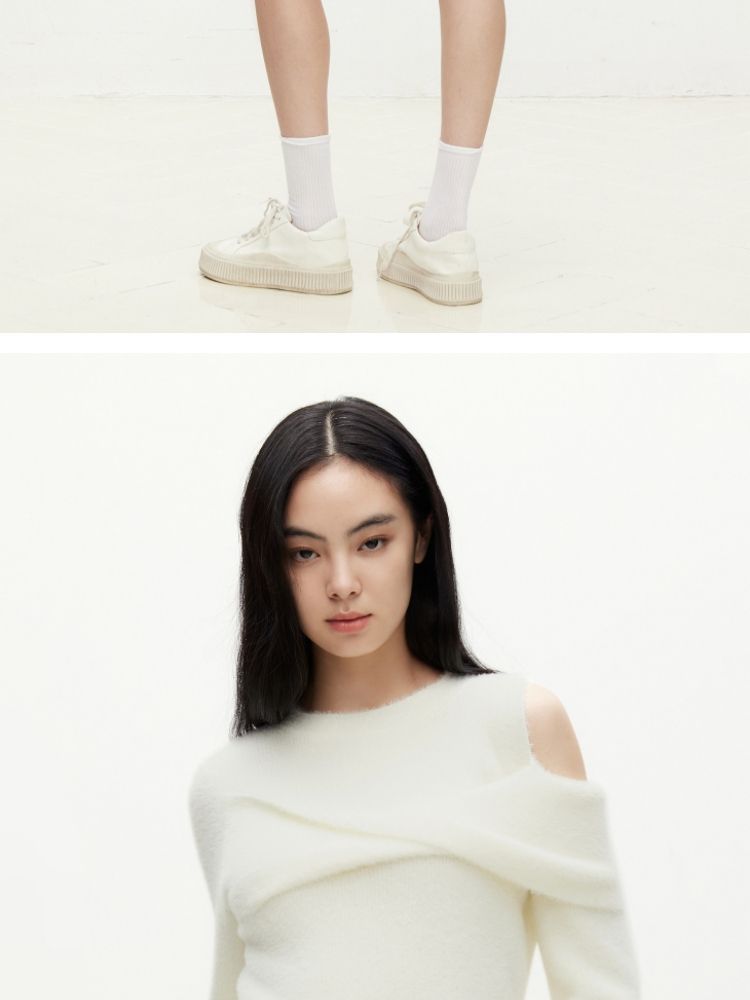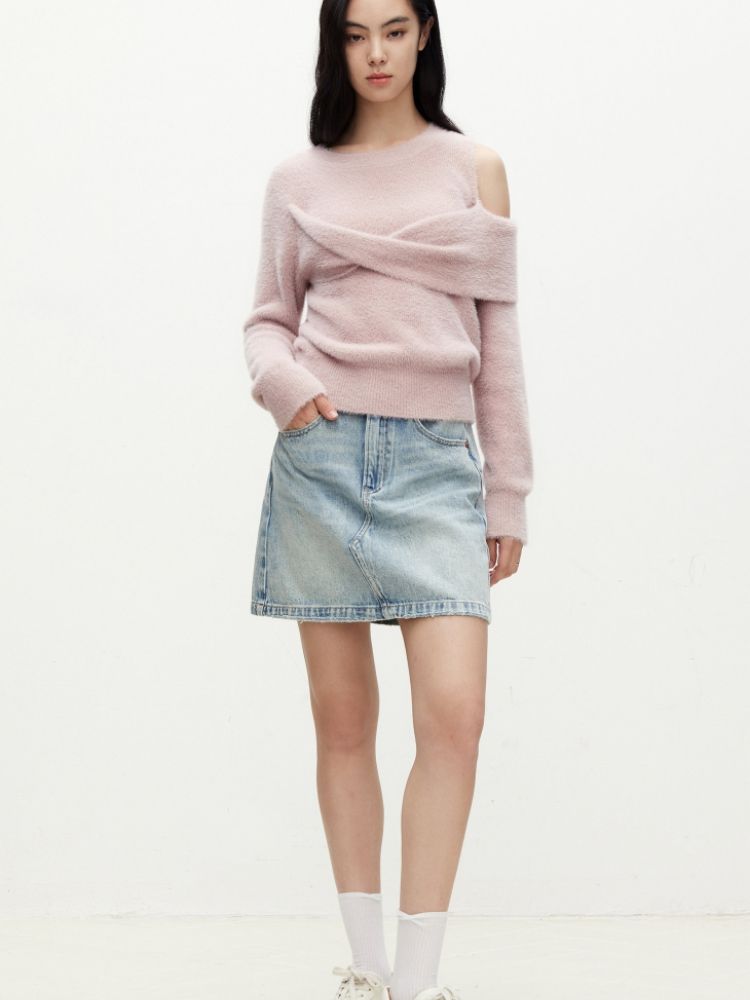 商品名称:【设计感】春季百搭慵懒设计感圆领露肩纯色针织衫女 021978