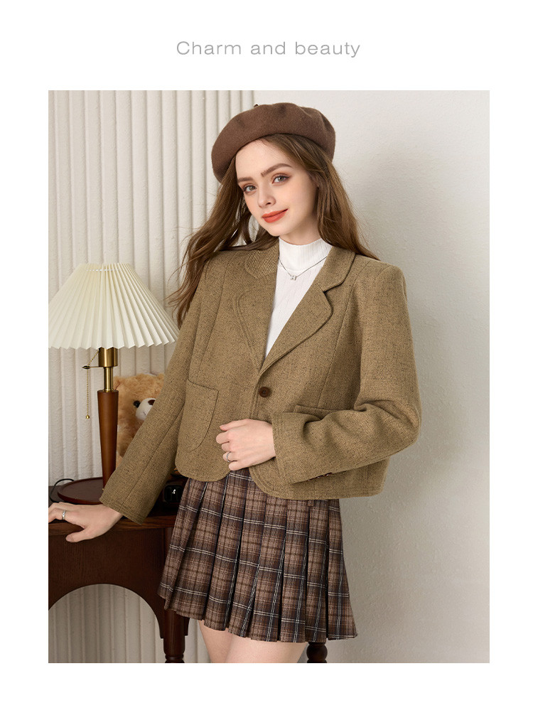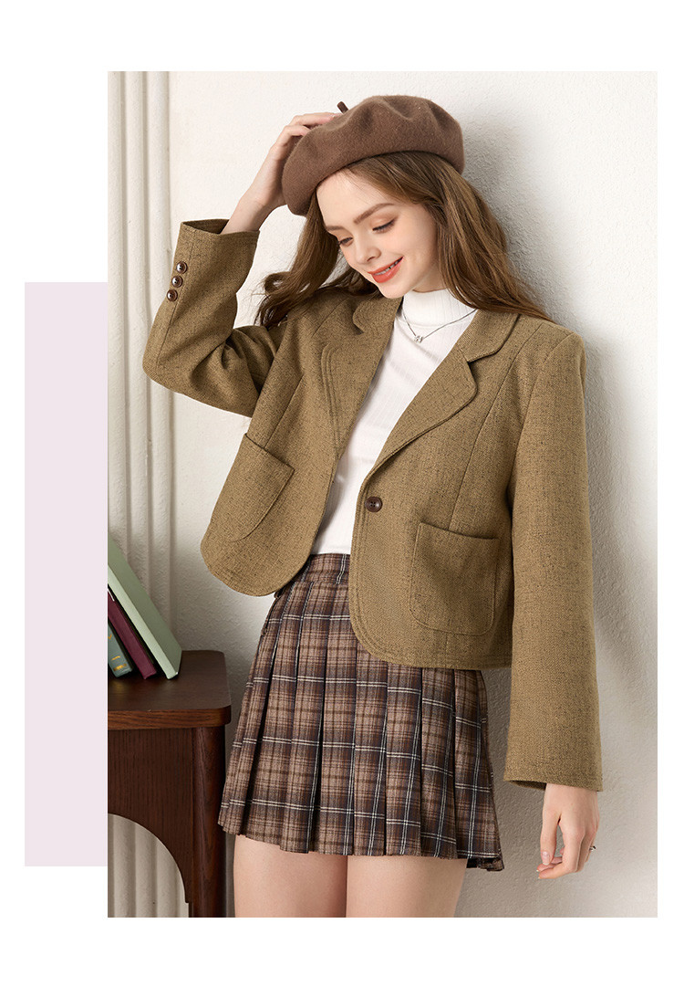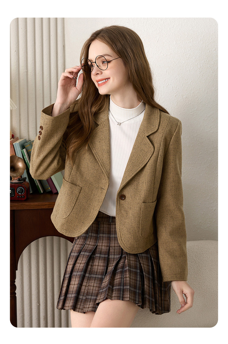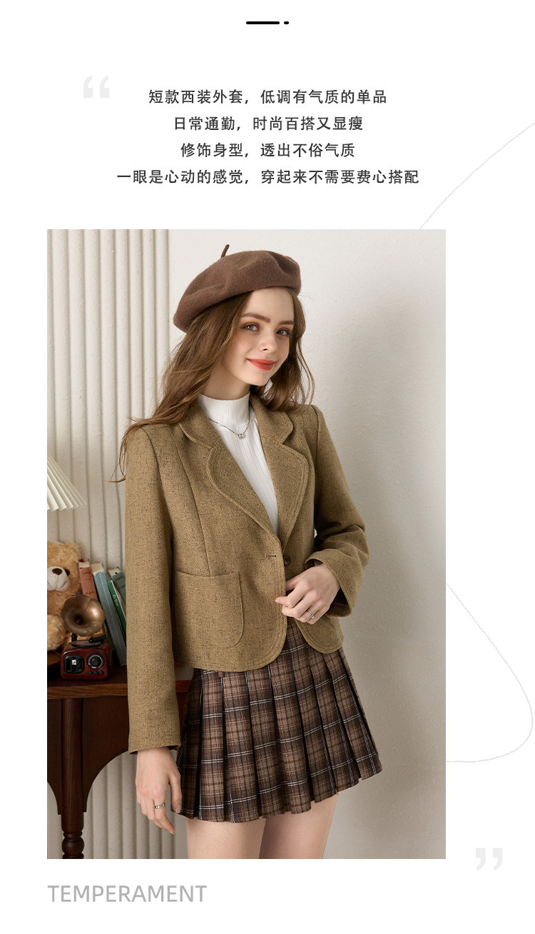 商品名称:简约时尚短款小香风西装外套女韩版通勤翻领一粒扣西服上衣 199832