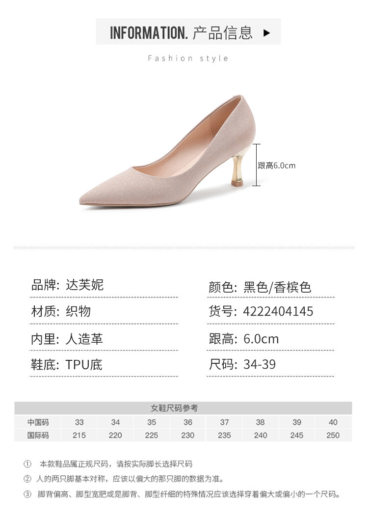 商品名称:【热卖爆款】气质名媛细跟高跟鞋女春秋款职场通勤尖头礼服单鞋女 780759