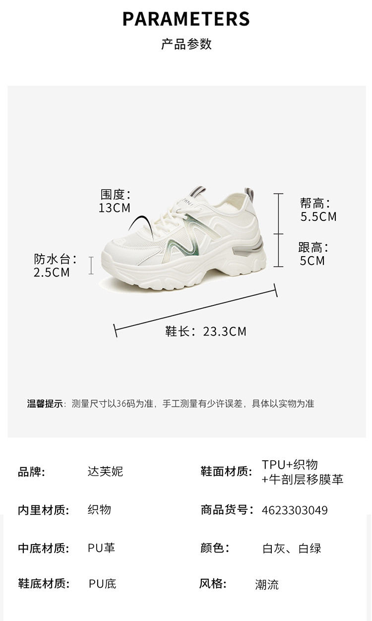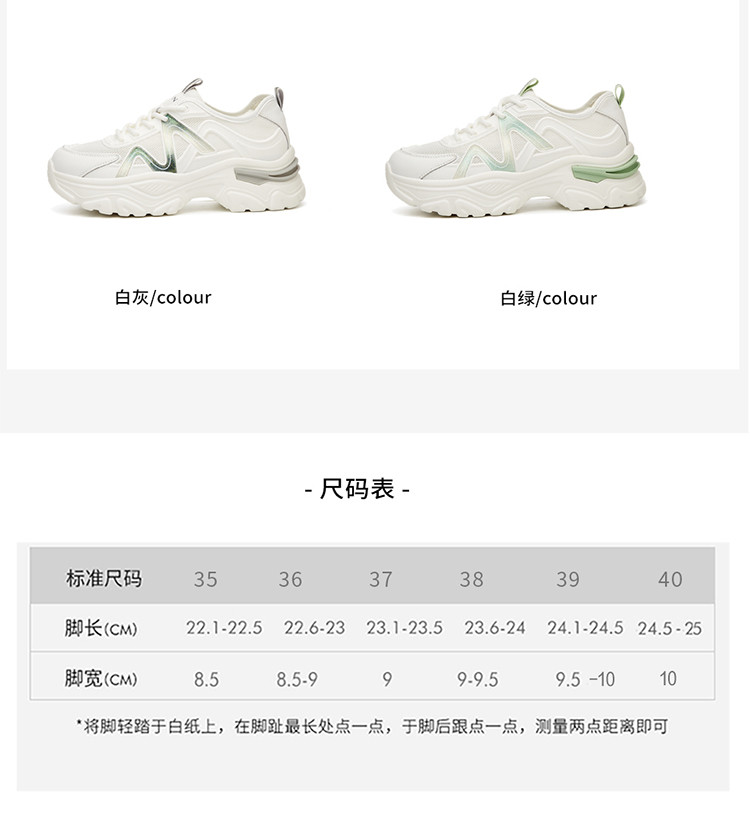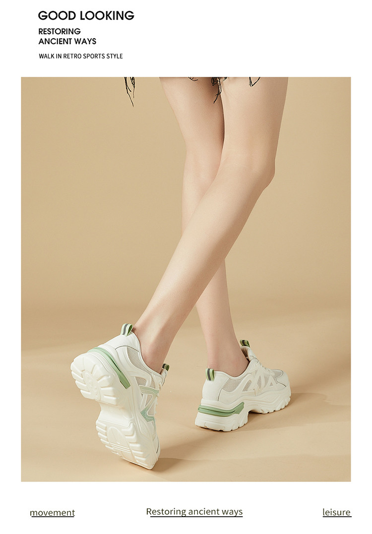 商品名称:【网面透气】夏季小白鞋复古休闲鞋百搭德训鞋运动鞋时尚老爹鞋女 040023