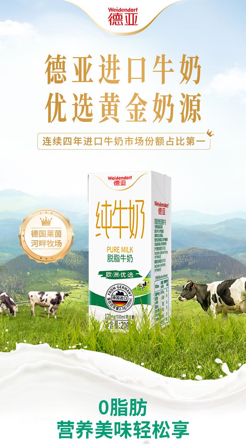商品名称:德国进口德亚轻盈脱脂高钙纯牛奶200ml*12盒礼盒