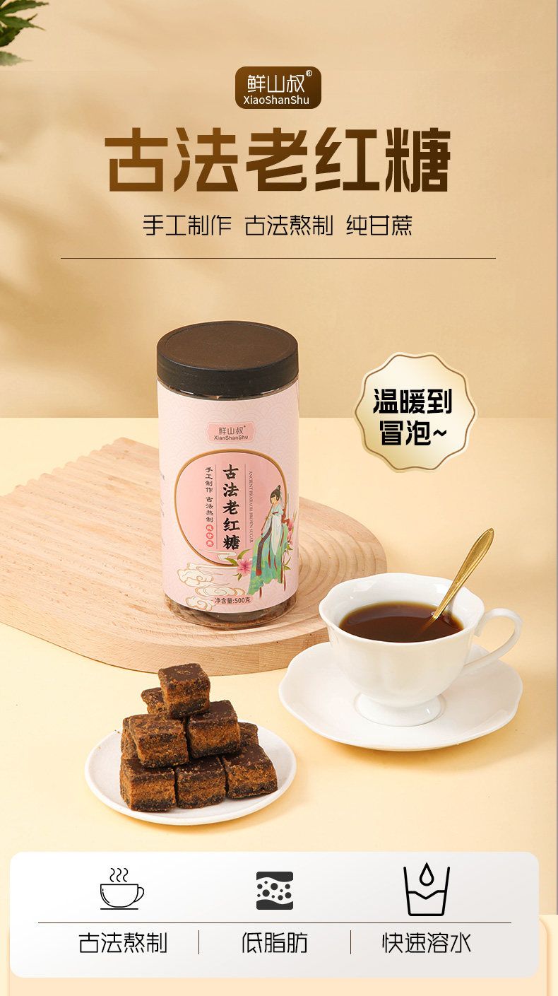 商品名称:鲜山叔 甘蔗手工老红糖500g/1罐
