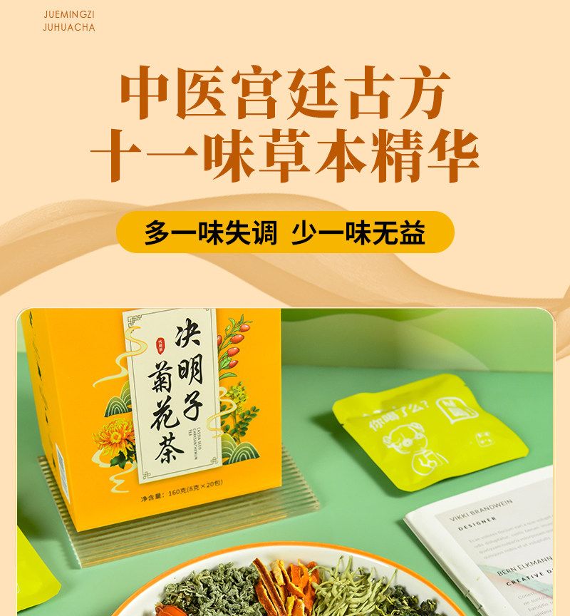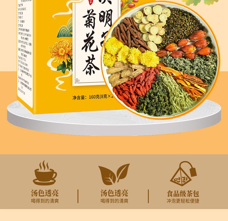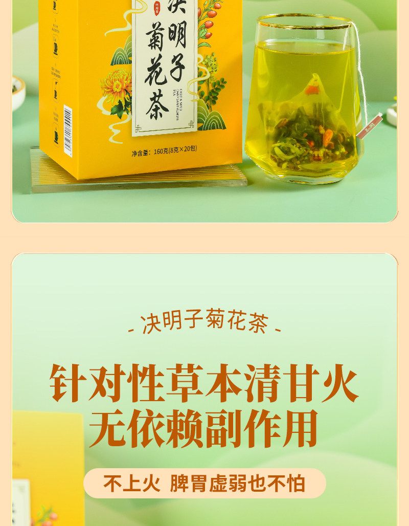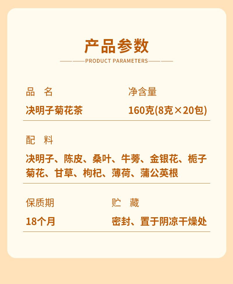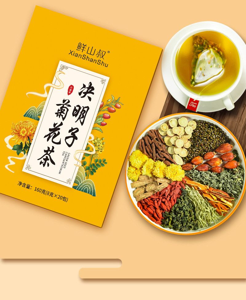 商品名称:鲜山叔决明子菊花茶160g/1盒(每盒8g*20袋)