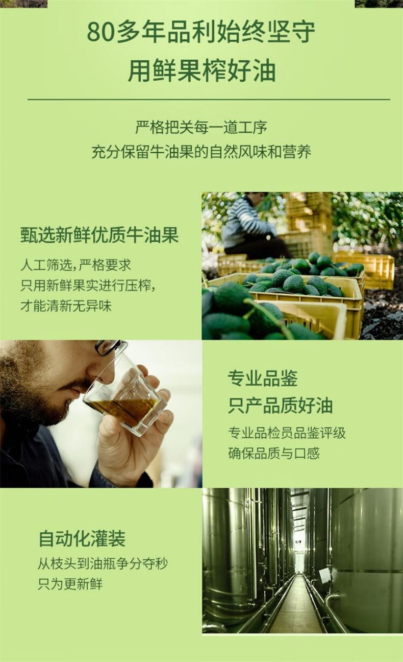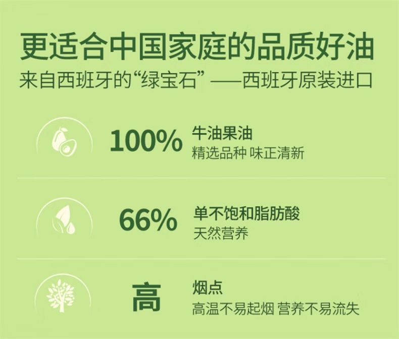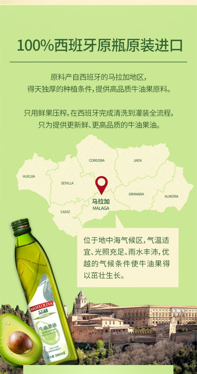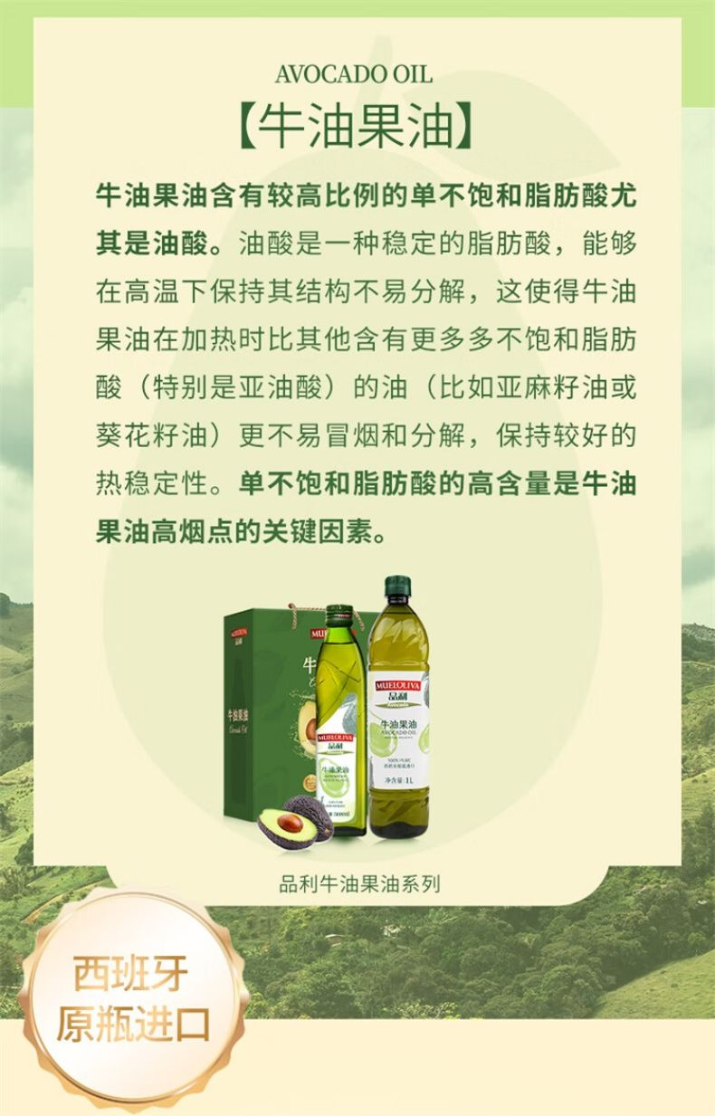 商品名称:品利牛油果油500ml*2瓶礼盒装 鳄梨油食用油家用热炒凉拌西班牙进口 牛油果油
