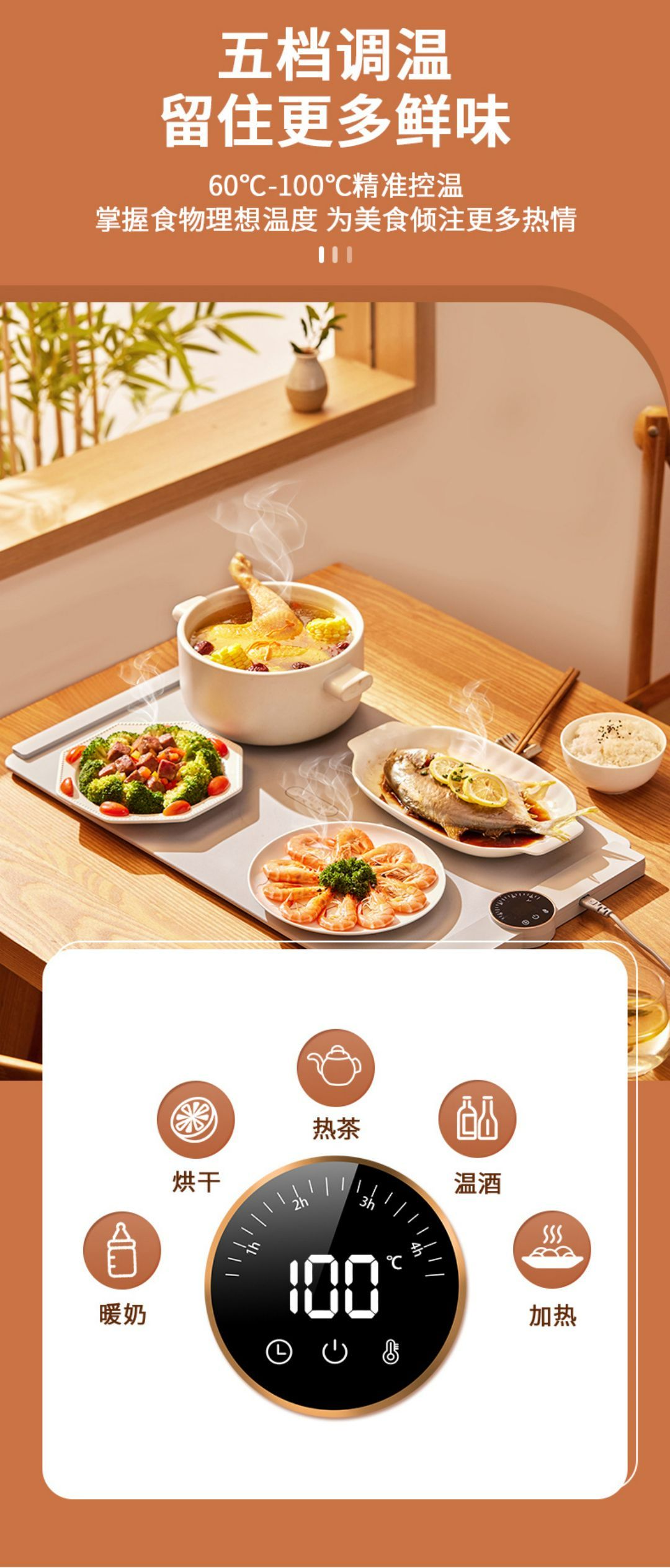 生活元素暖菜板家用热菜板柔性可折叠保温硅胶加热菜板恒温暖菜垫保温成