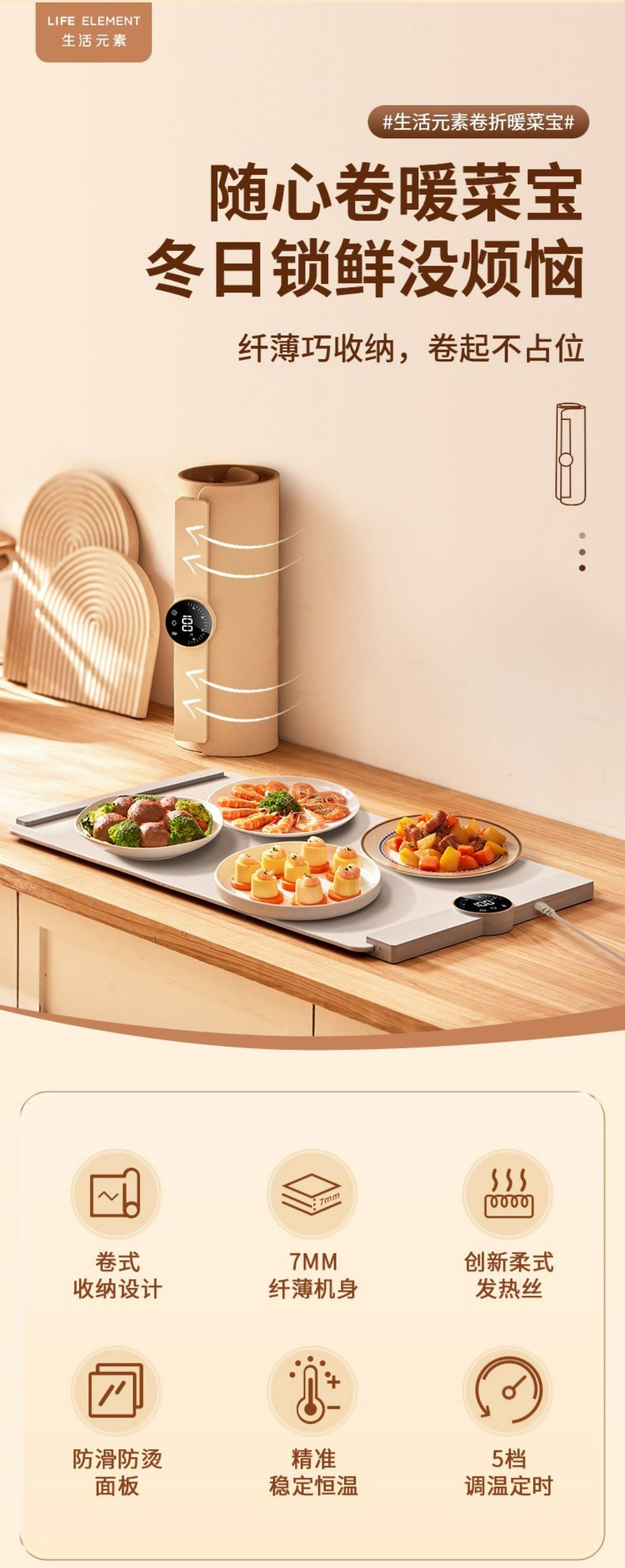 商品名称:生活元素暖菜板家用热菜板柔性可折叠保温硅胶加热菜板恒温暖菜垫保温成