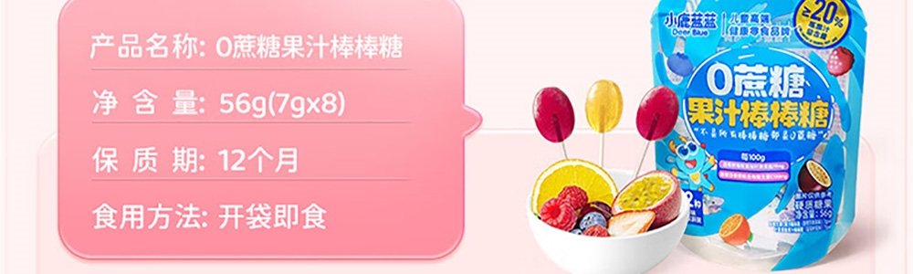 商品名称:小鹿蓝蓝 果汁棒棒糖 56g (双味)