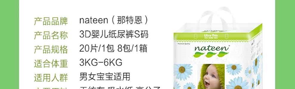 比利时 那特恩(nateen)清风系列纸尿裤 S20片(3-6kg)