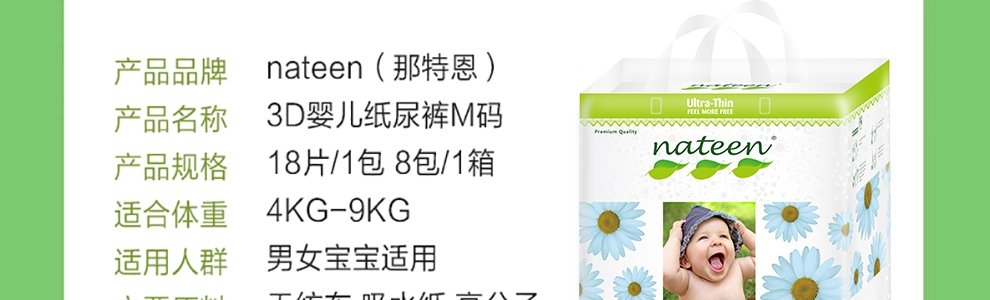商品名称:比利时 那特恩(nateen)清风系列纸尿裤 M18片(4-9kg)
