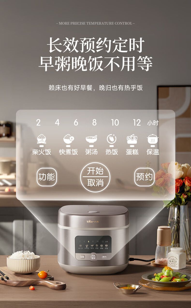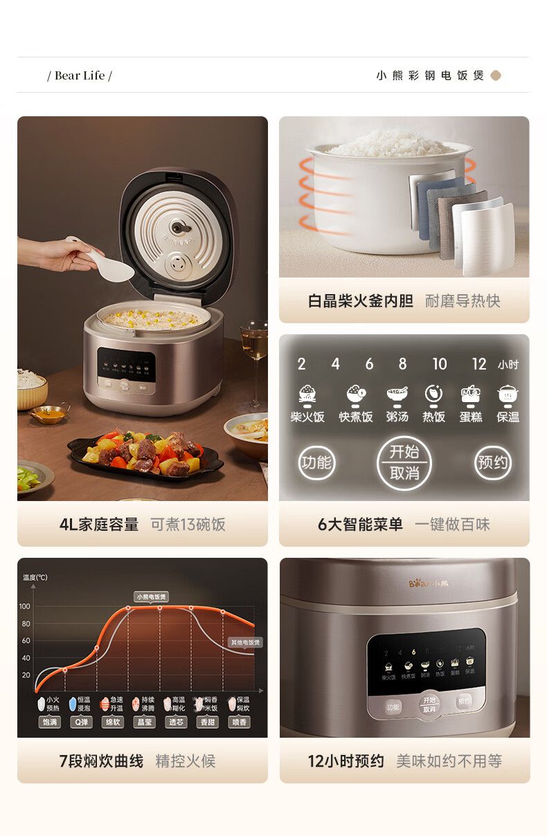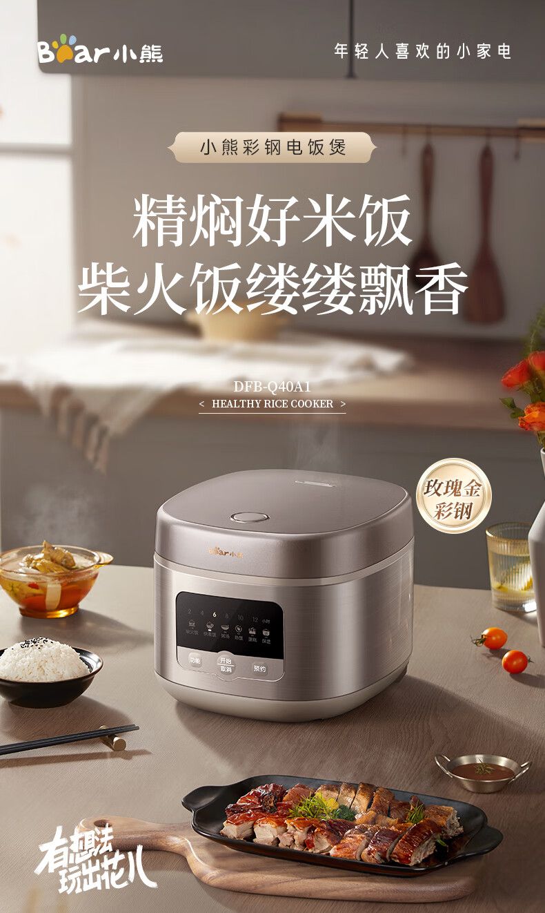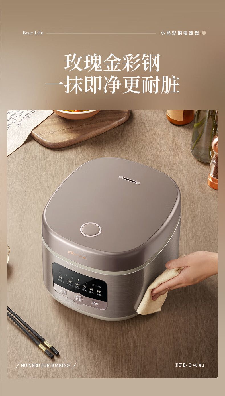 小熊电饭煲DFB-Q40A1 4升大容量不粘内胆 微电脑多功能智能预约柴火饭快速煮饭煮粥