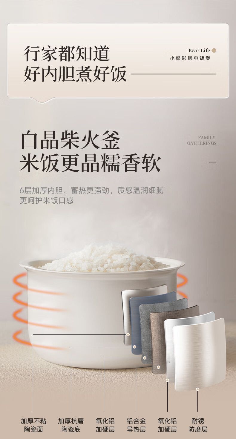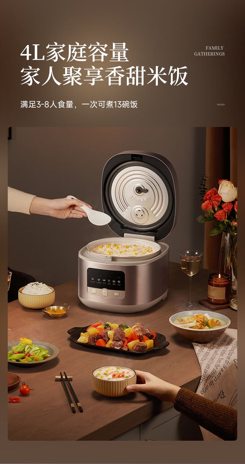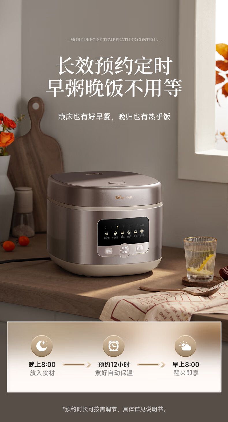 小熊电饭煲DFB-Q40A1 4升大容量不粘内胆 微电脑多功能智能预约柴火饭快速煮饭煮粥