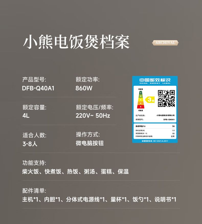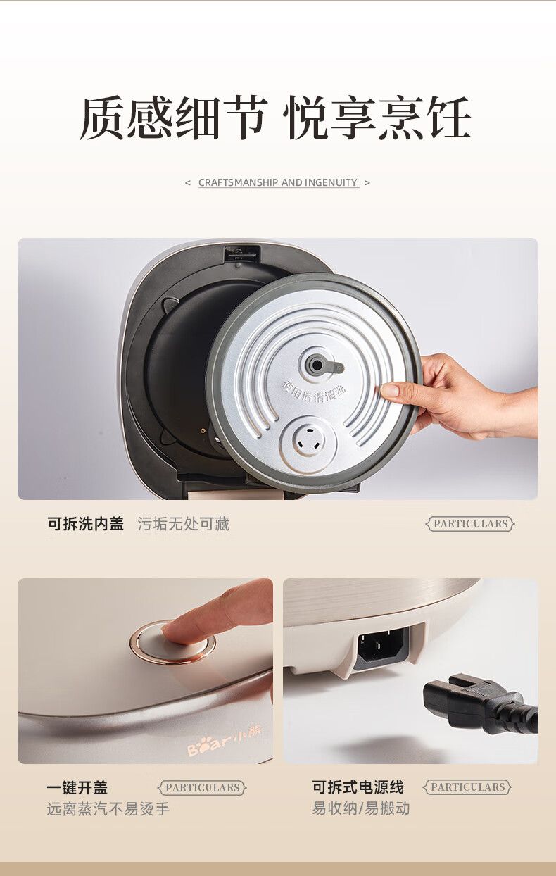 商品名称:小熊电饭煲DFB-Q40A1 4升大容量不粘内胆 微电脑多功能智能预约柴火饭快速煮饭煮粥