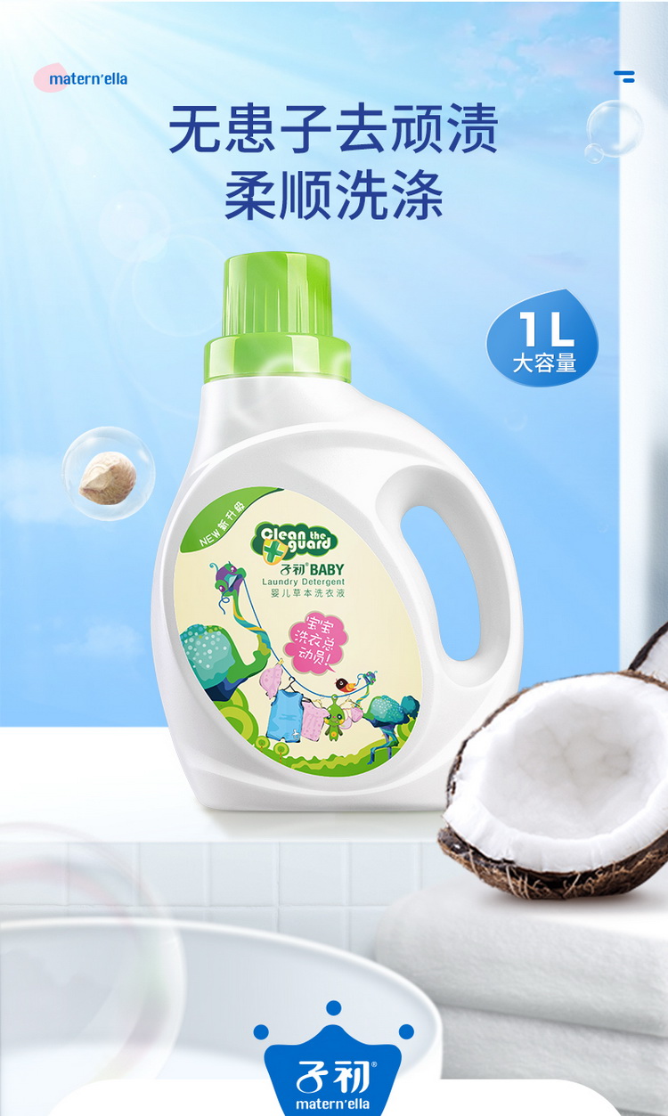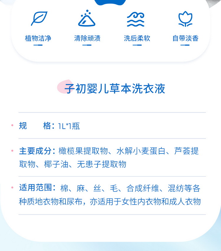 商品名称:【品牌直供】子初婴儿草本倍护洗衣液1L 新生儿宝宝儿童专用天然洗衣液内裤内衣去污