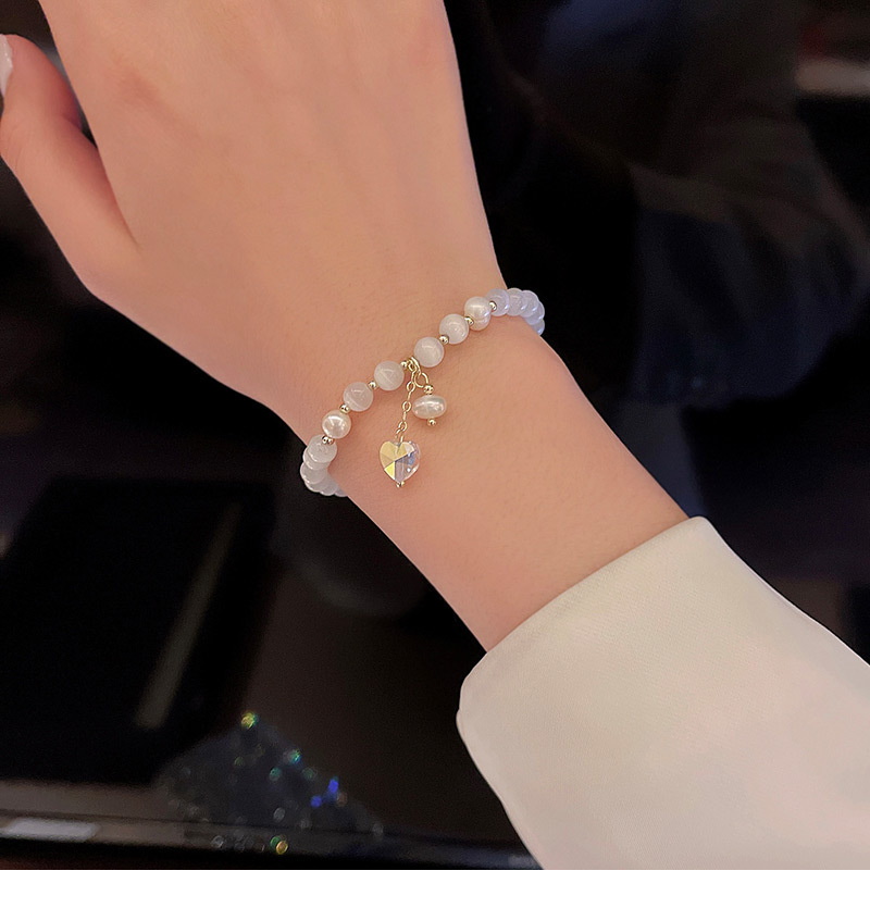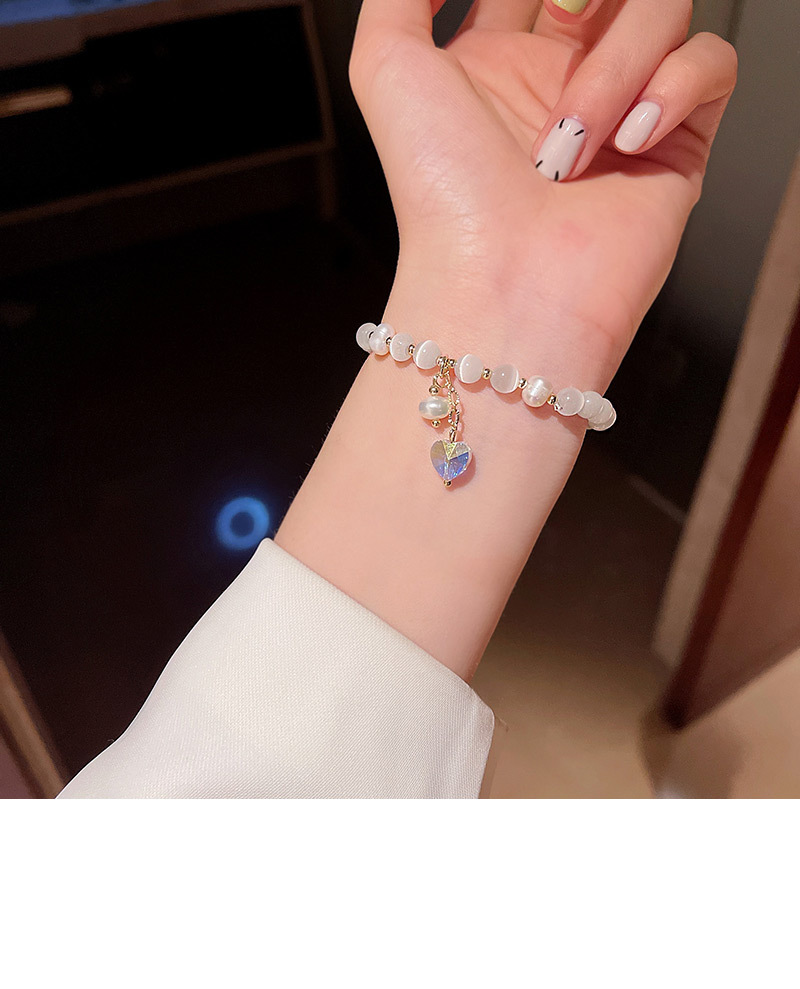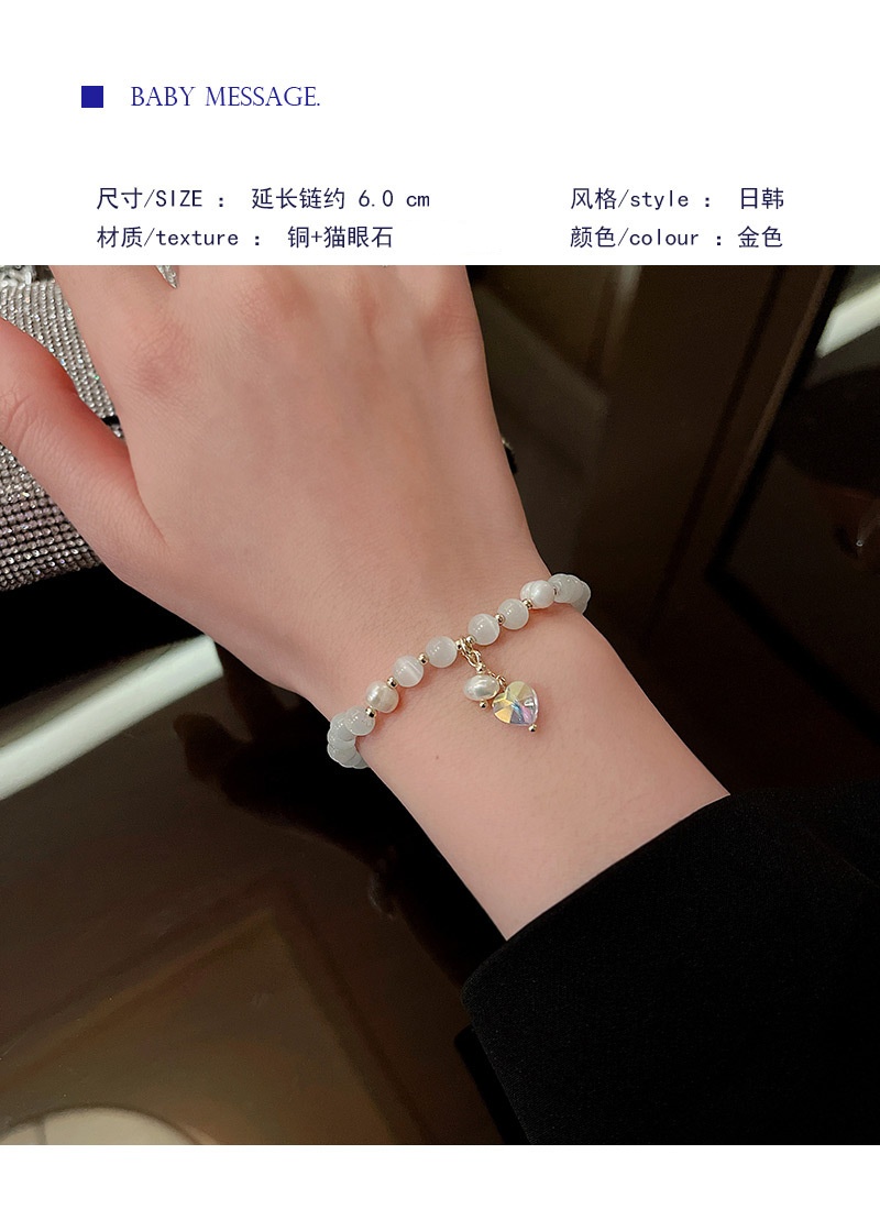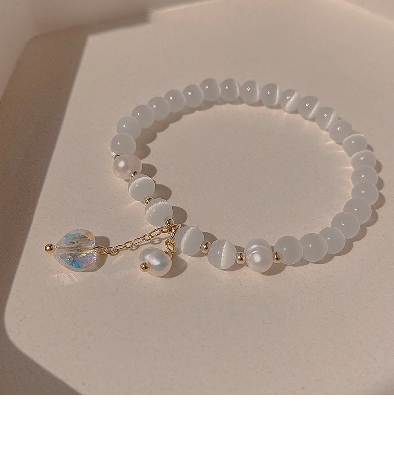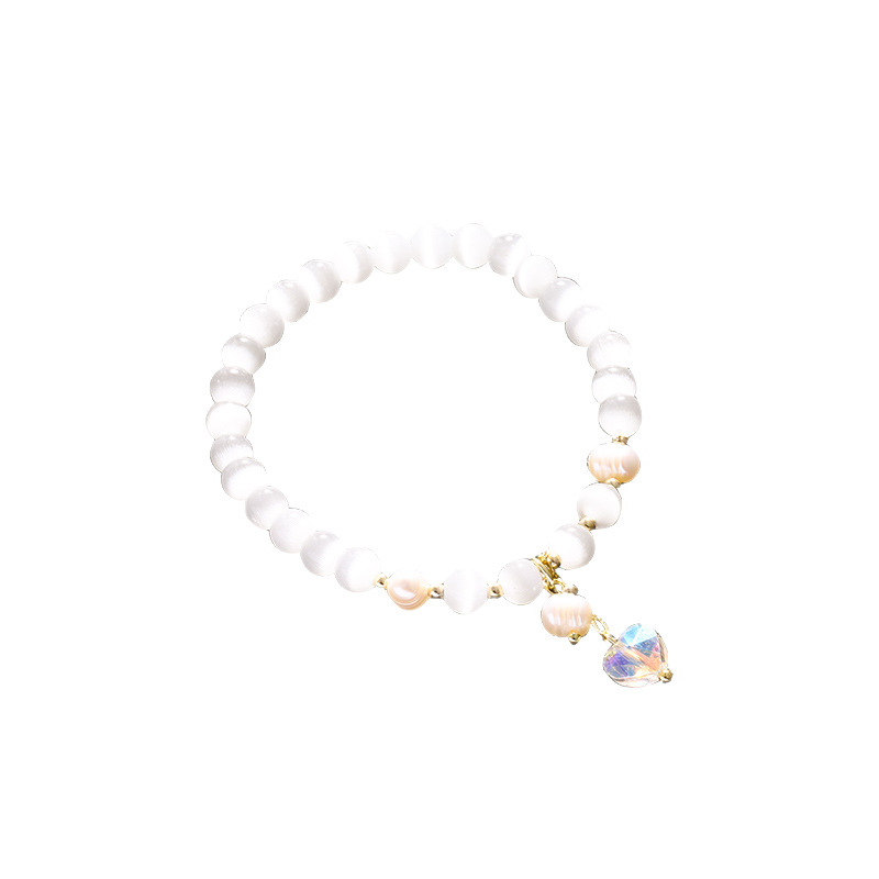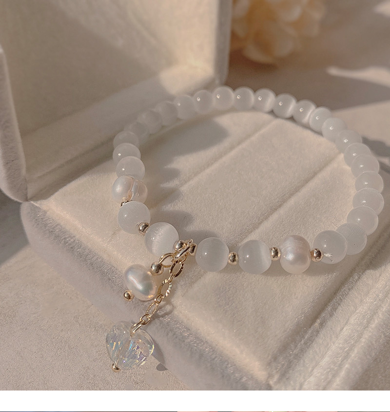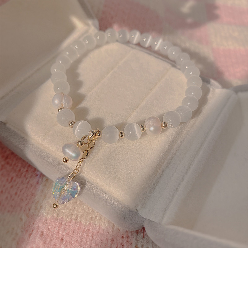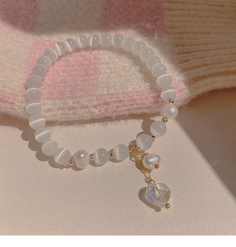 商品名称:彤彤兔 白色猫眼石爱心手链女夏天学生闺蜜网红水晶手镯日式简约文艺手饰