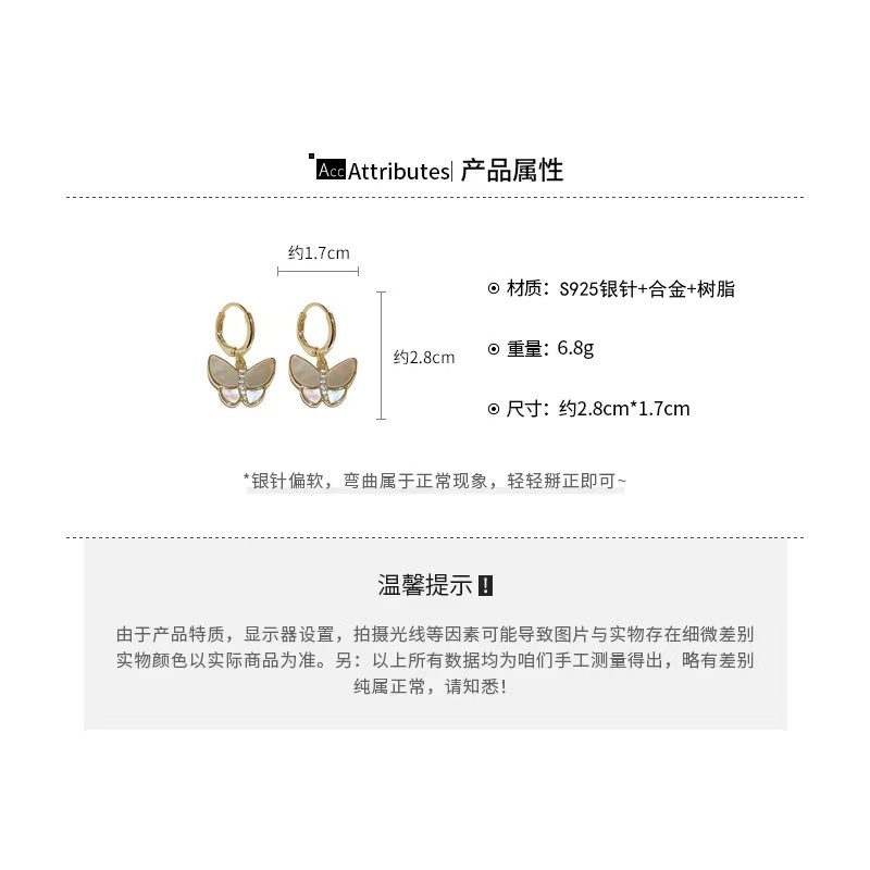 商品名称:彤彤兔 超仙贝壳蝴蝶耳扣耳环女设计感时尚小众轻奢百搭抖音网红耳饰