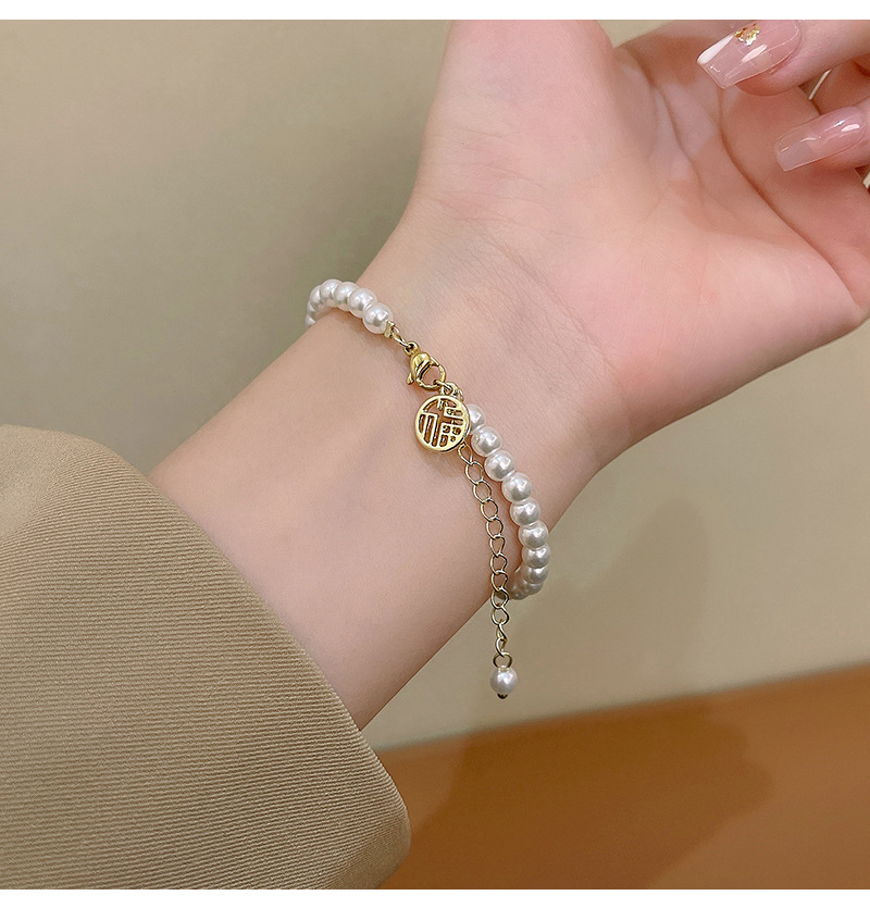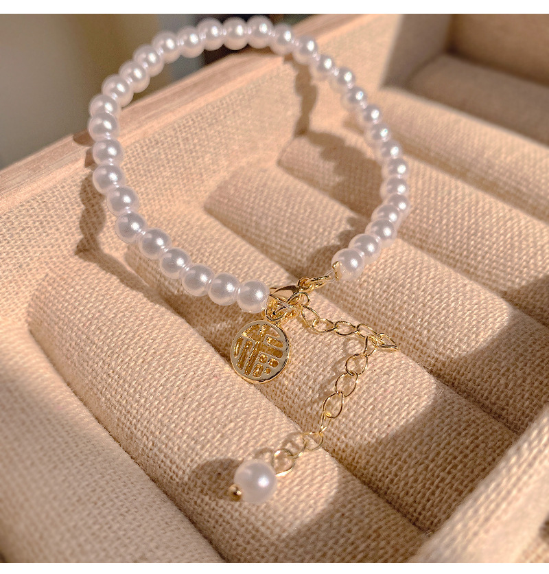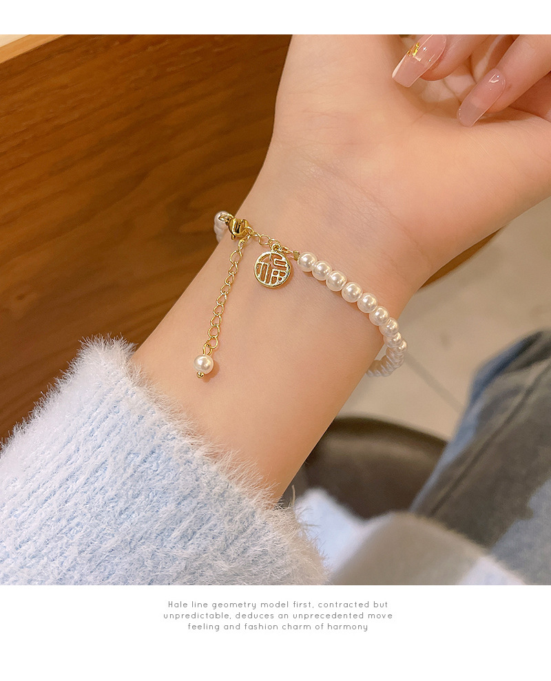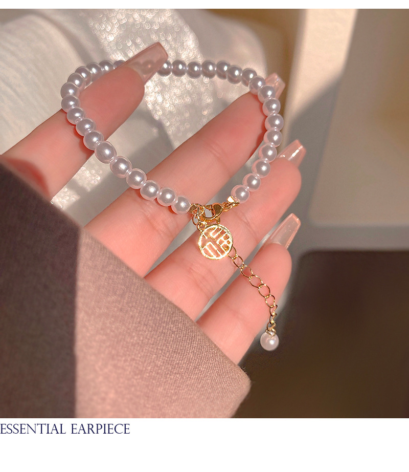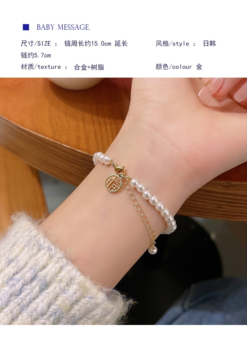 商品名称:彤彤兔 福字气质手链女小众高级感树脂复古闺蜜手串网红仙女珍珠学生首饰