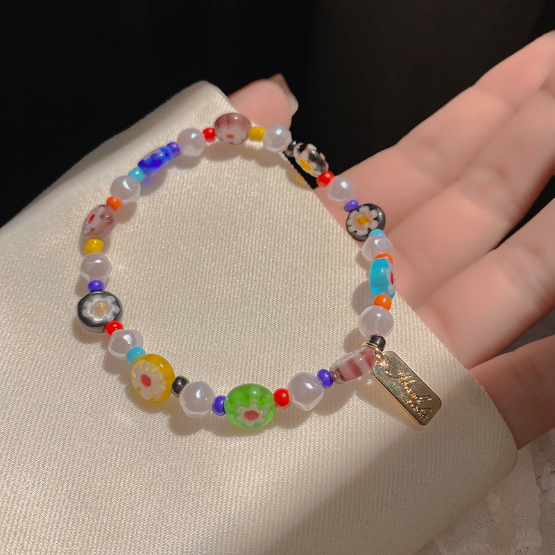 彤彤兔 韩国小众设计感同款树脂彩色花朵时尚网红手工珍珠串珠闺蜜手链女