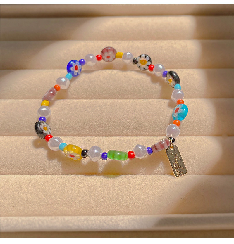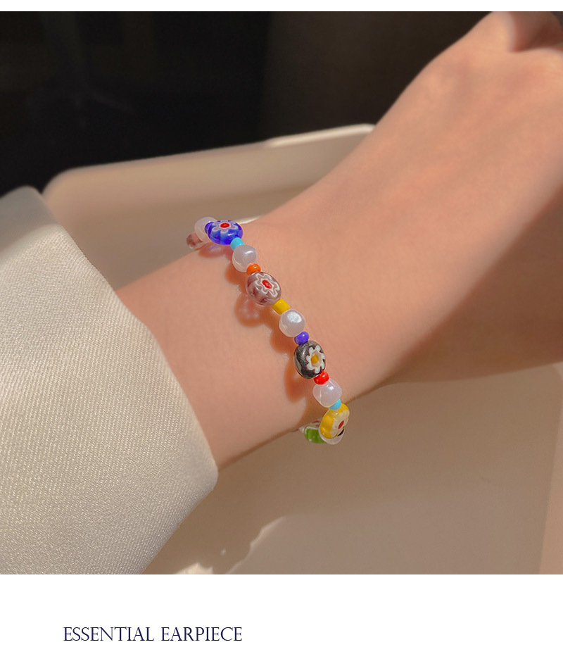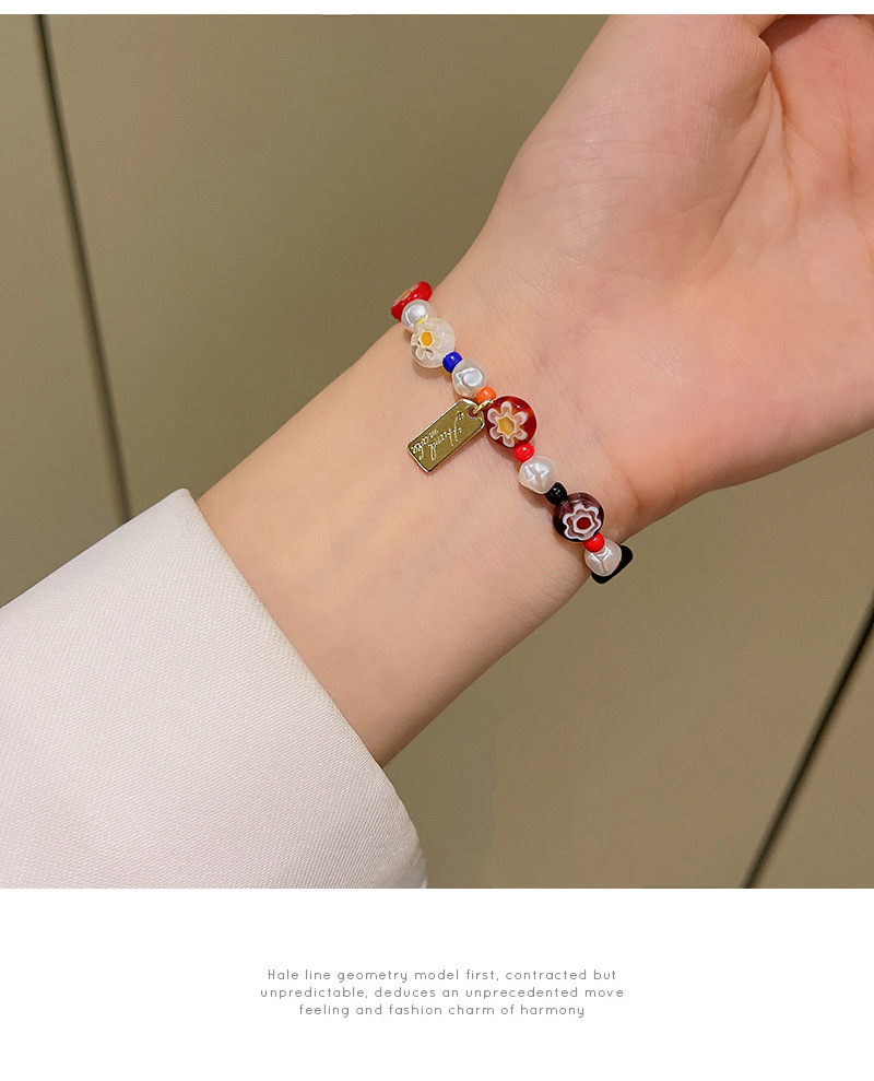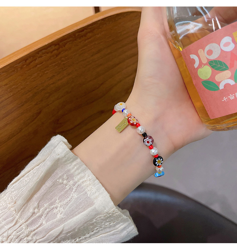 商品名称:彤彤兔 韩国小众设计感同款树脂彩色花朵时尚网红手工珍珠串珠闺蜜手链女