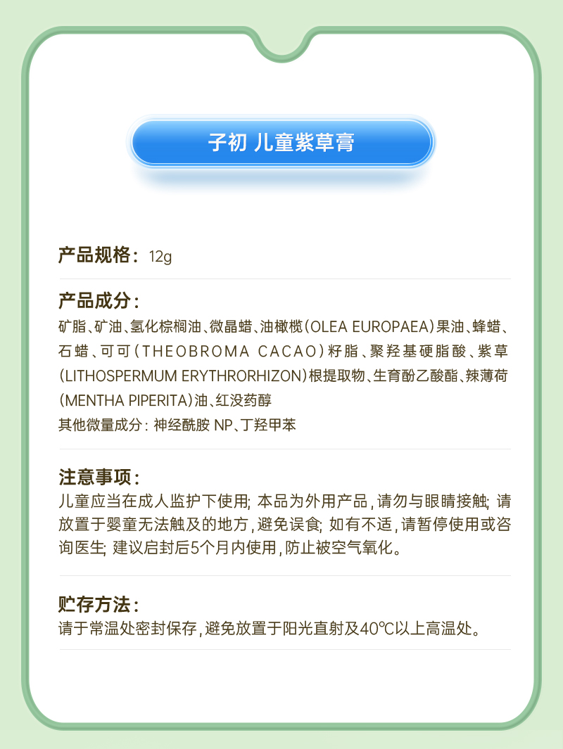 商品名称:【品牌直供】子初紫草膏婴儿适用宝宝蚊虫叮咬舒缓膏儿童户外便携清凉膏夏季12g