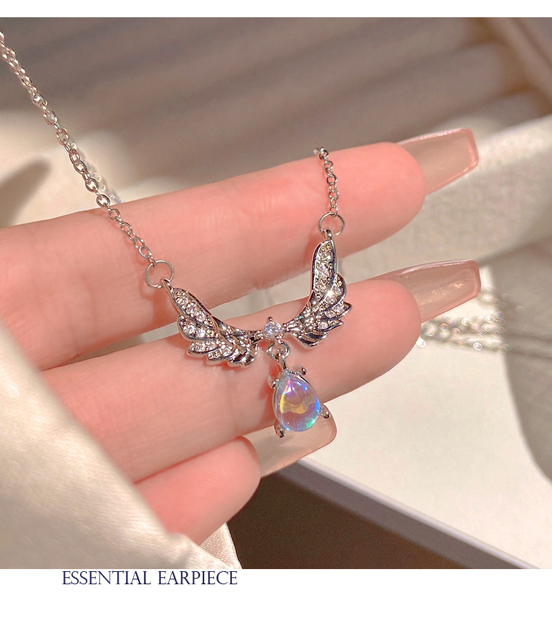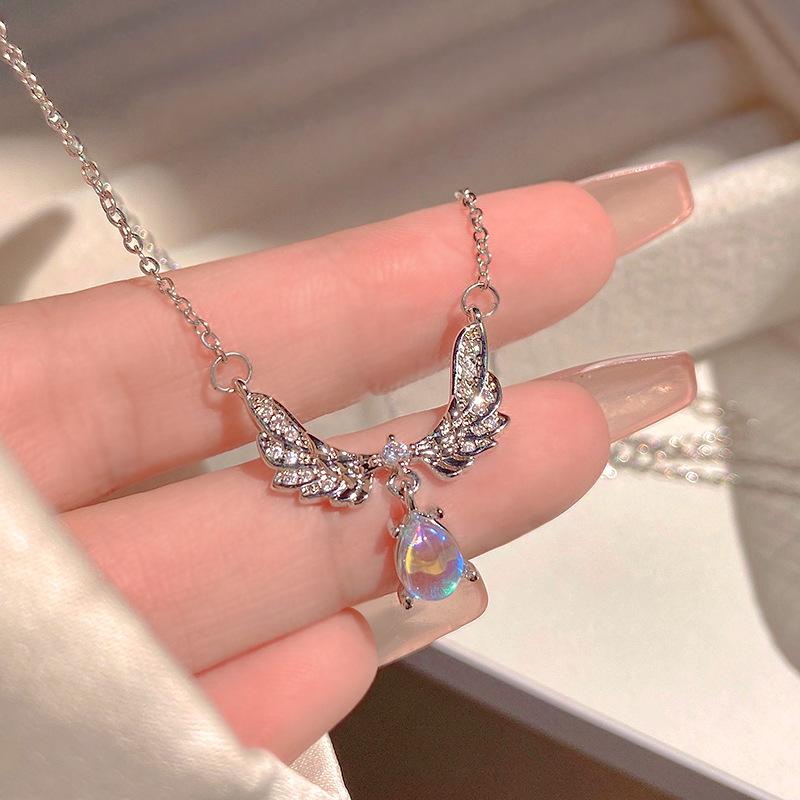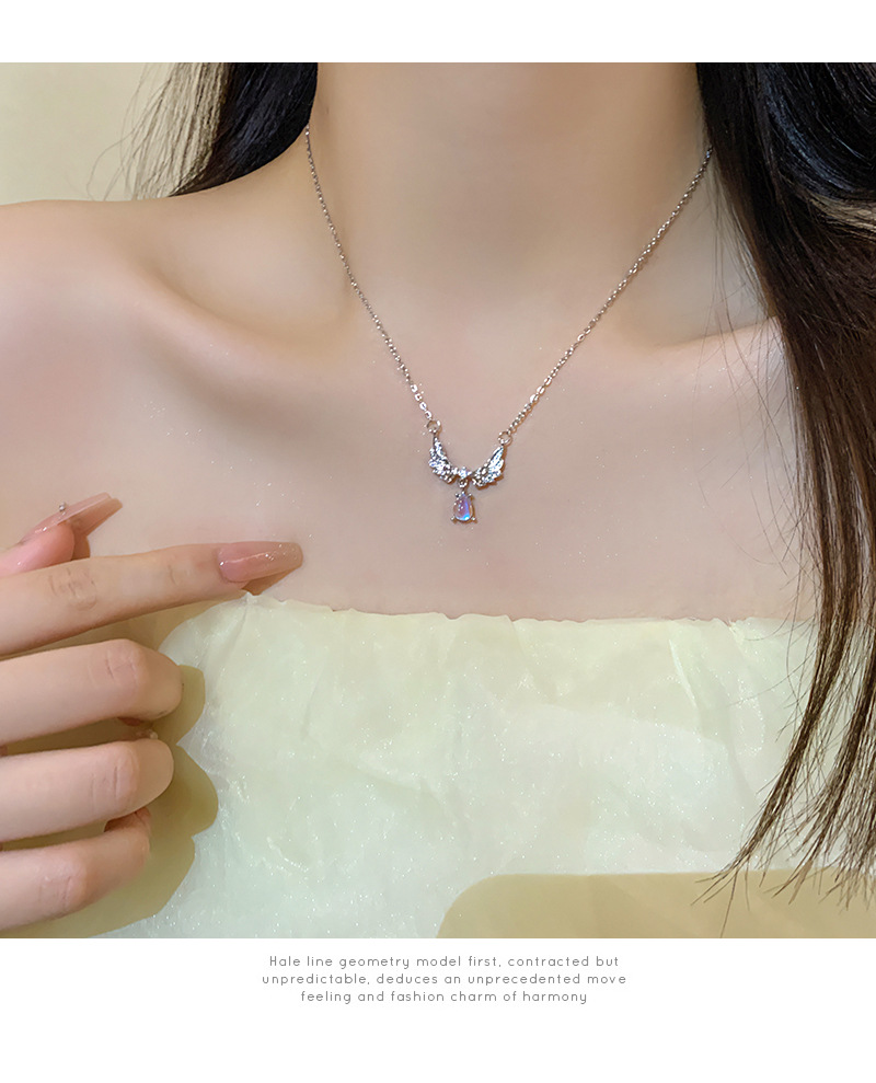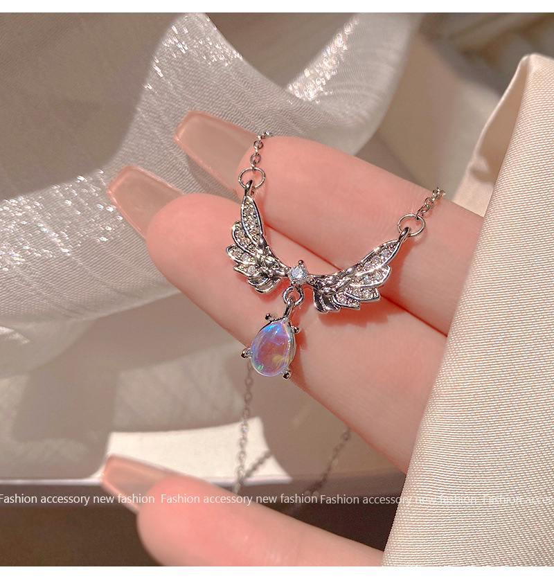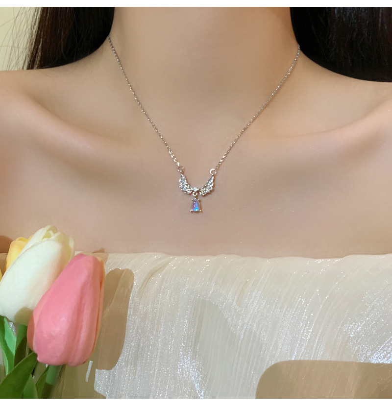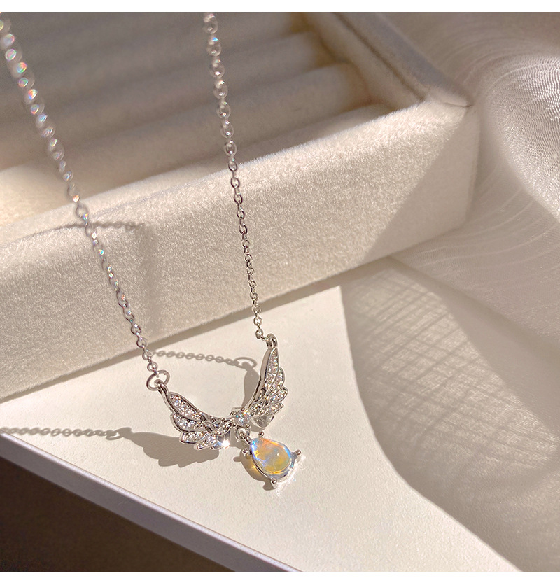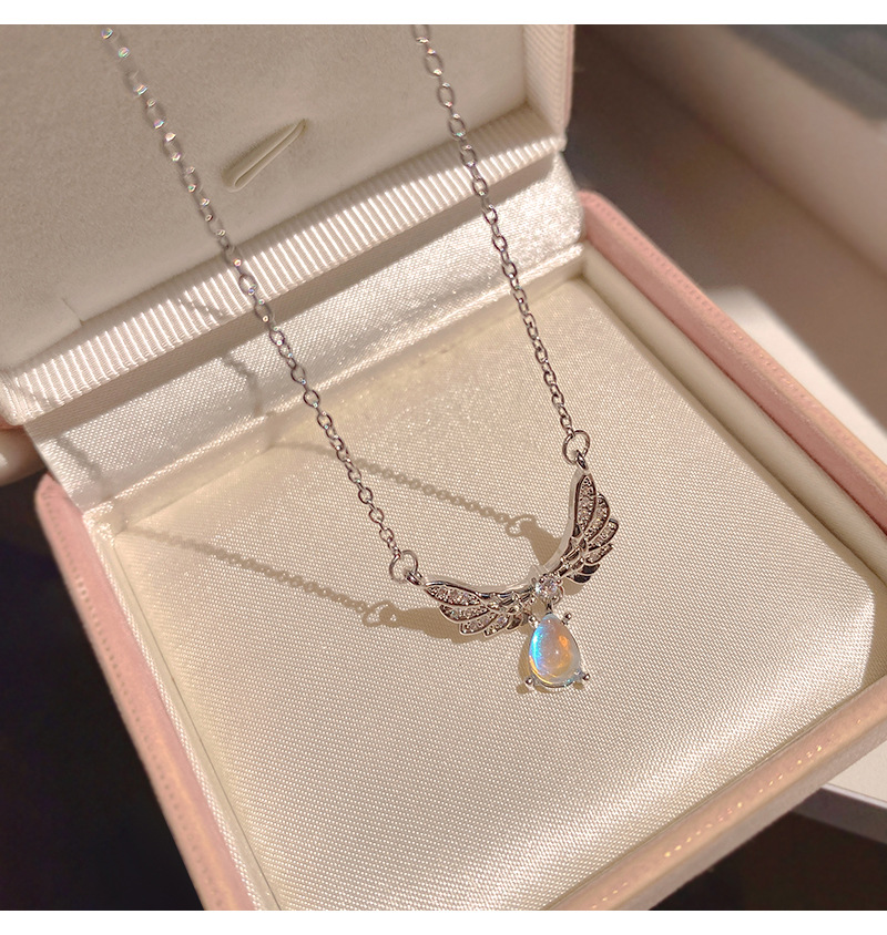 商品名称:彤彤兔 法式微镶月光石项链翅膀个性高级感百搭锁骨链闺蜜网红小众颈链女