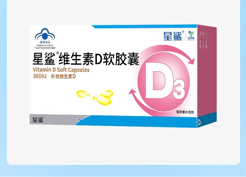 星鲨维生素D软胶囊360IU 48粒/盒(下单1:1赠维D 10粒装)